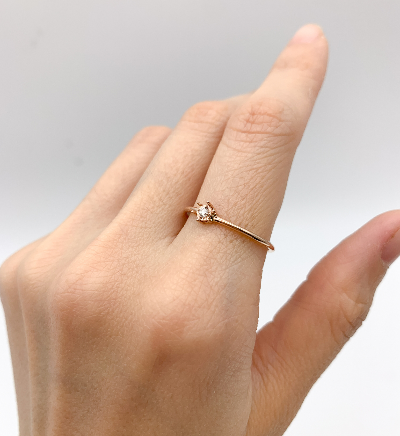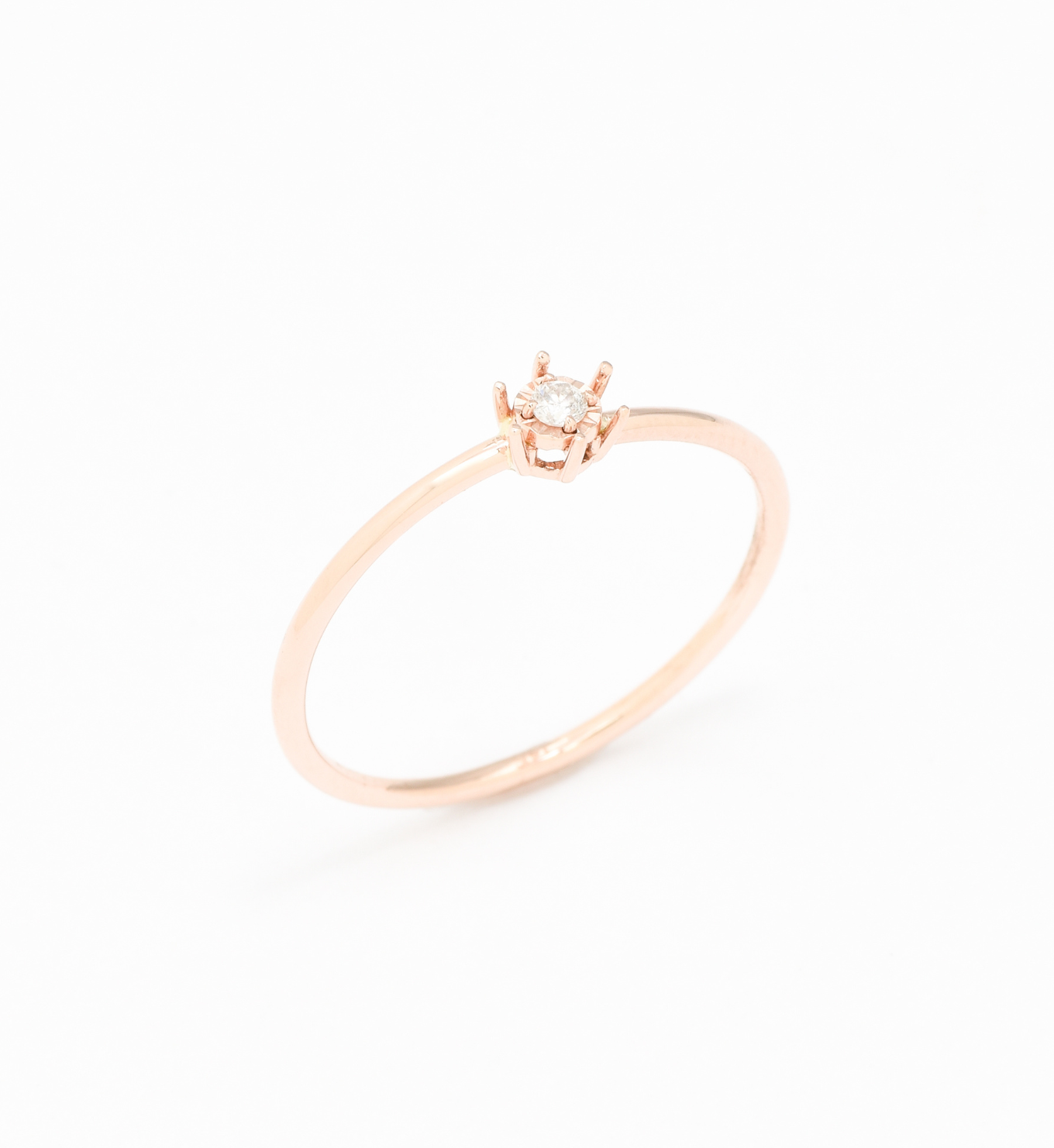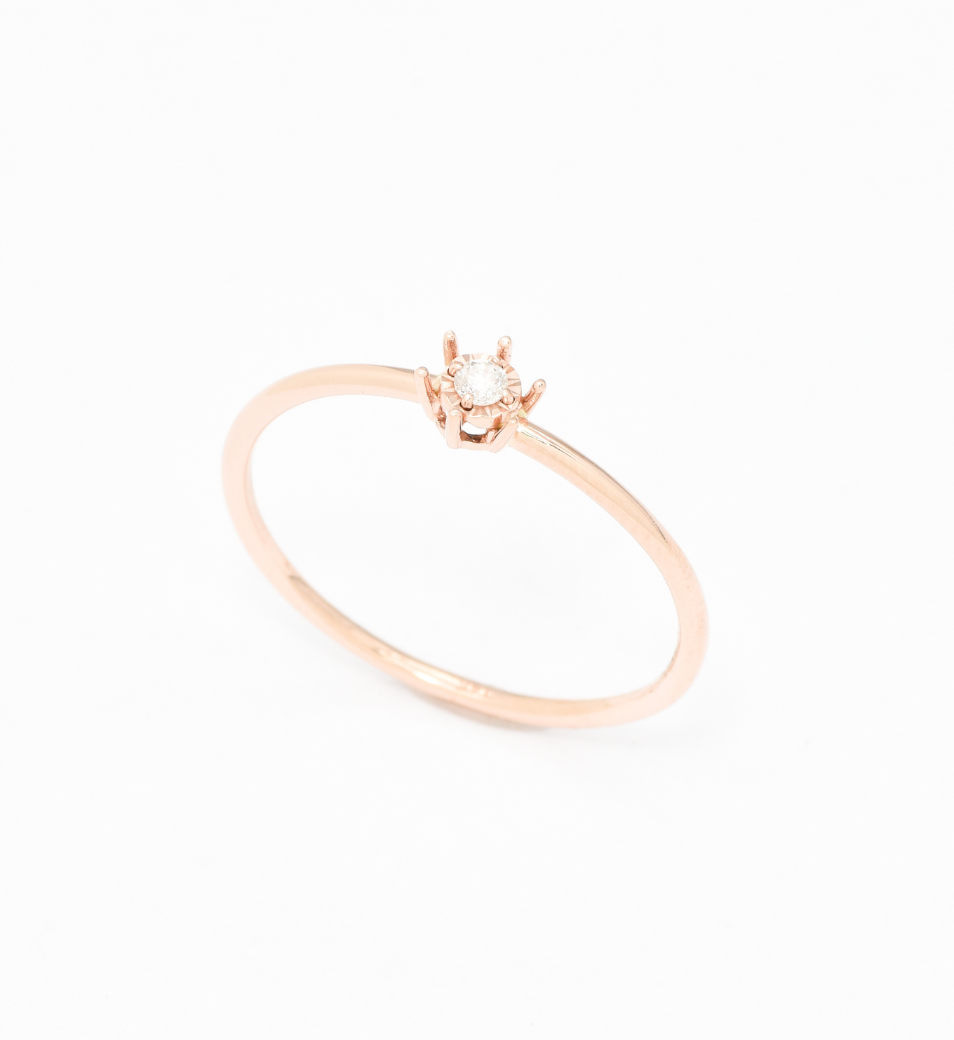 Dainty Diamond Rose Gold Ring set with Natural Diamond, size 2 millimeters diameter, 0.6 Carats.