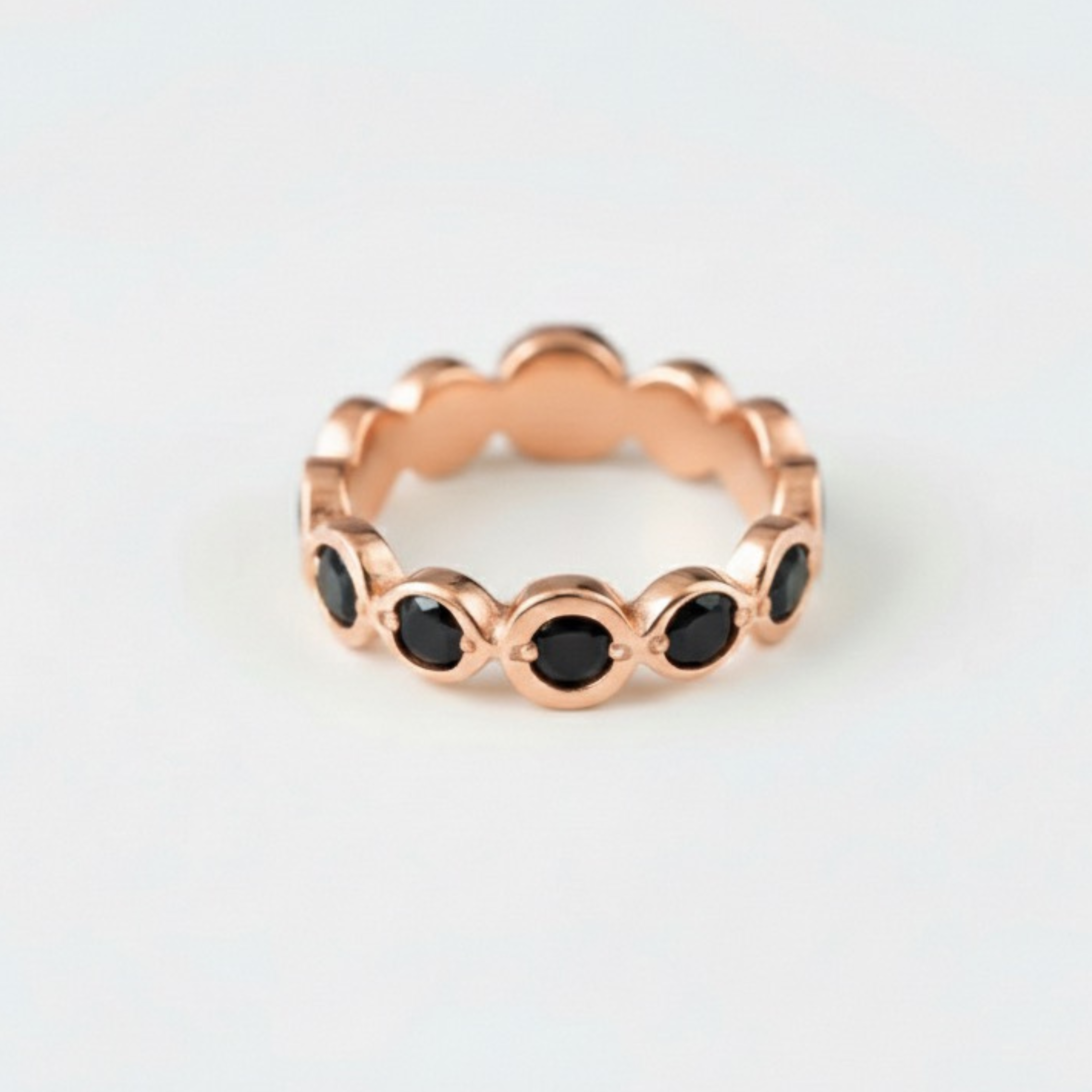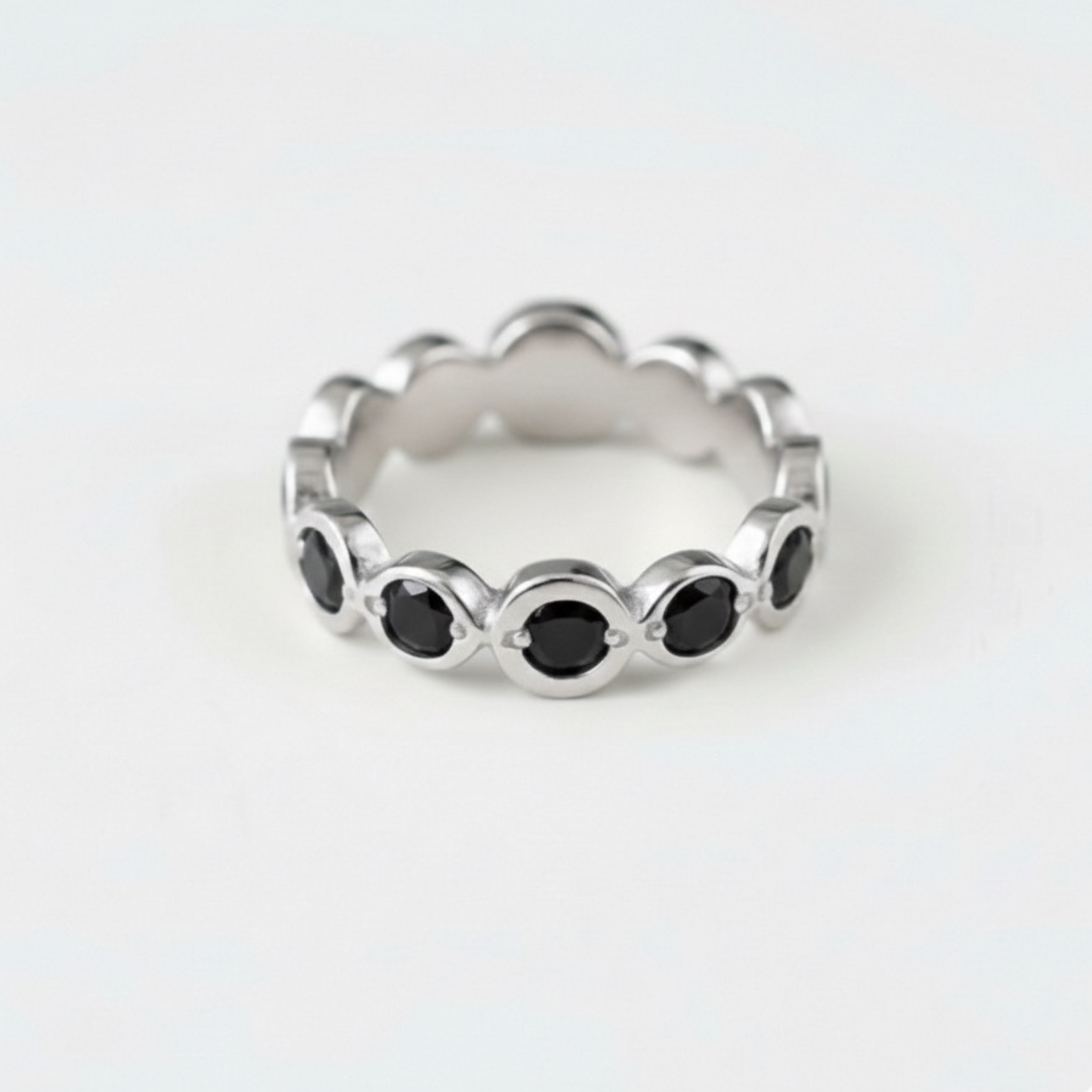 Genuine Onyx Ring - Black Half Eternity Band - July & August Birthstone Ring