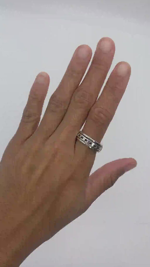 Star Spinning Ring - Silver Star Band - Rotatable Silver Band