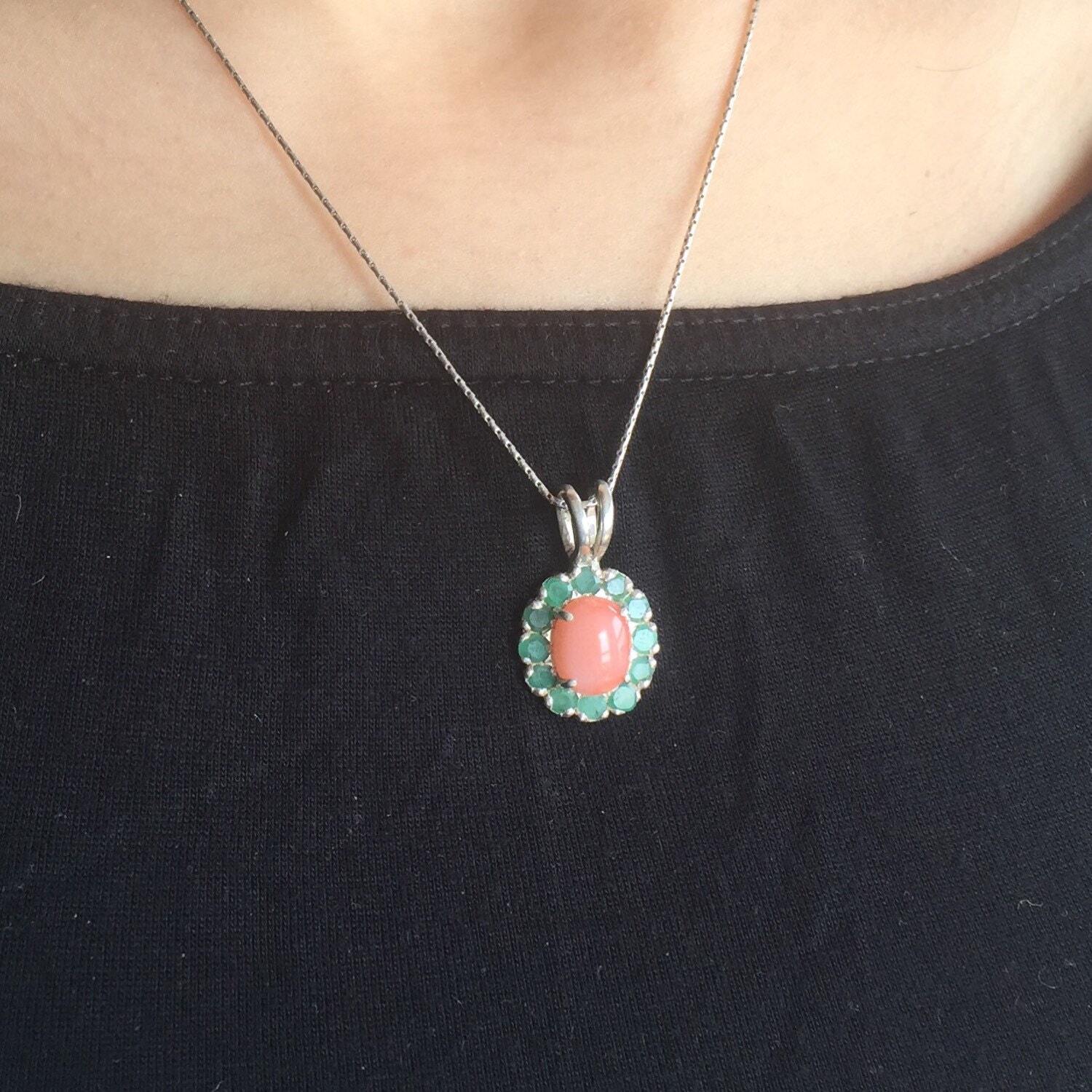 Victorian Opal Pendant, Natural Precious Opal, Emerald Necklace, October Birthstone, May Birthstone, Dainty Vintage Pendant, Silver Pendant