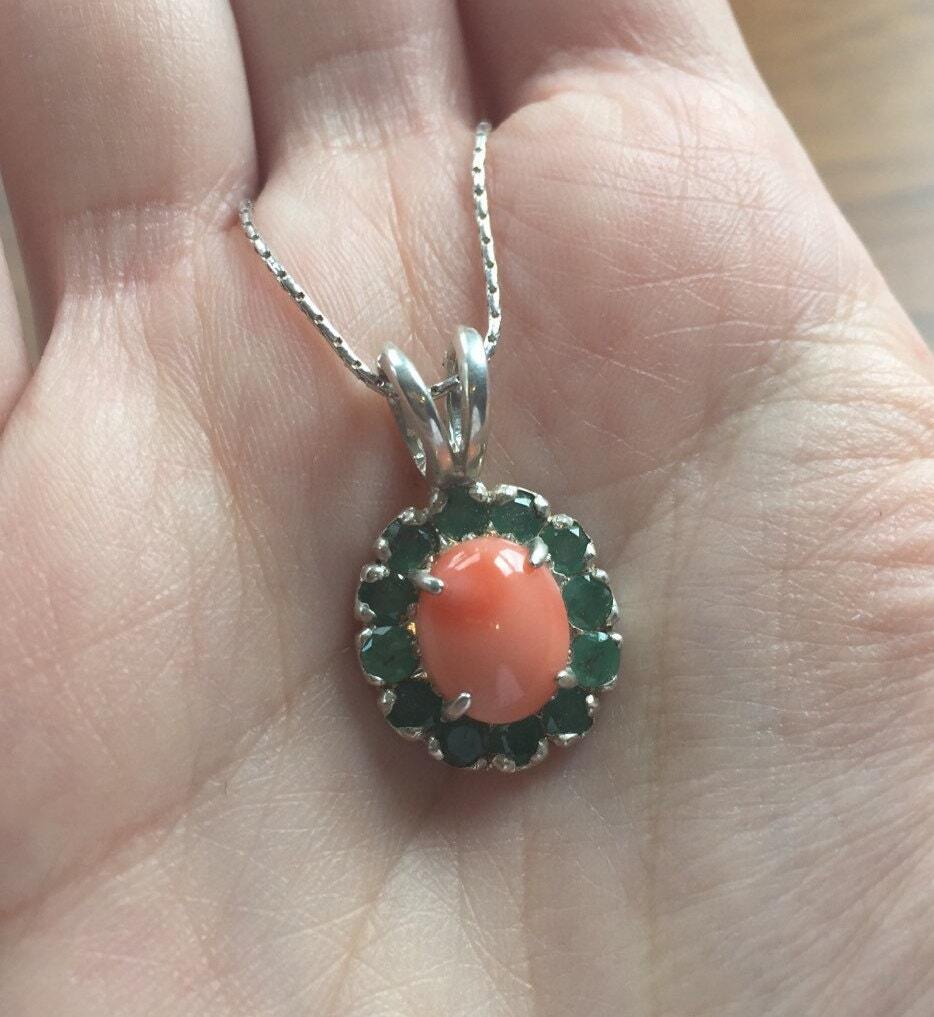 Birthstones Ring, Coral Ring, Natural Coral, Victorian Ring, Emerald Ring, Pink Coral Ring, Oval Ring, Sterling Silver Ring, Sapphire, Ruby