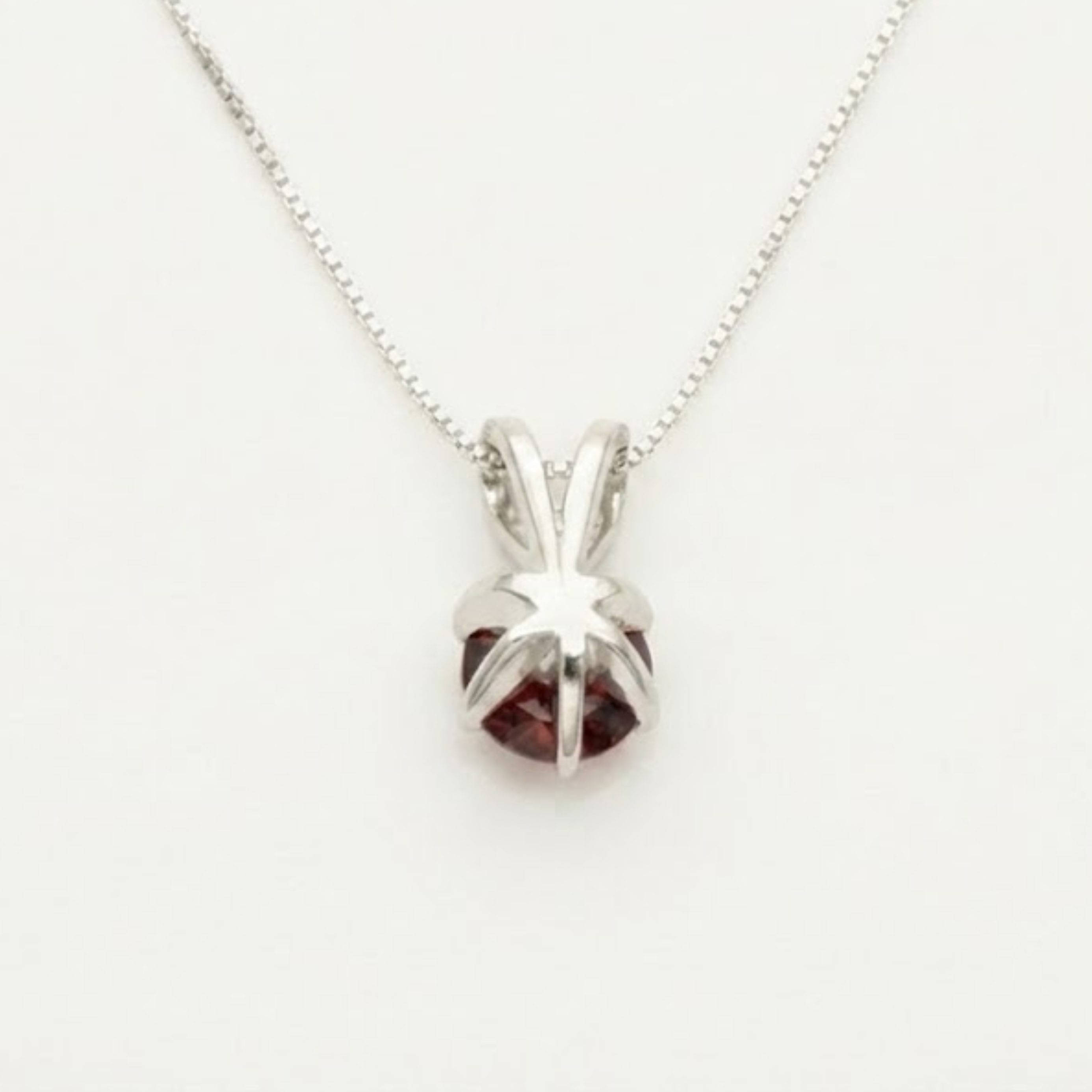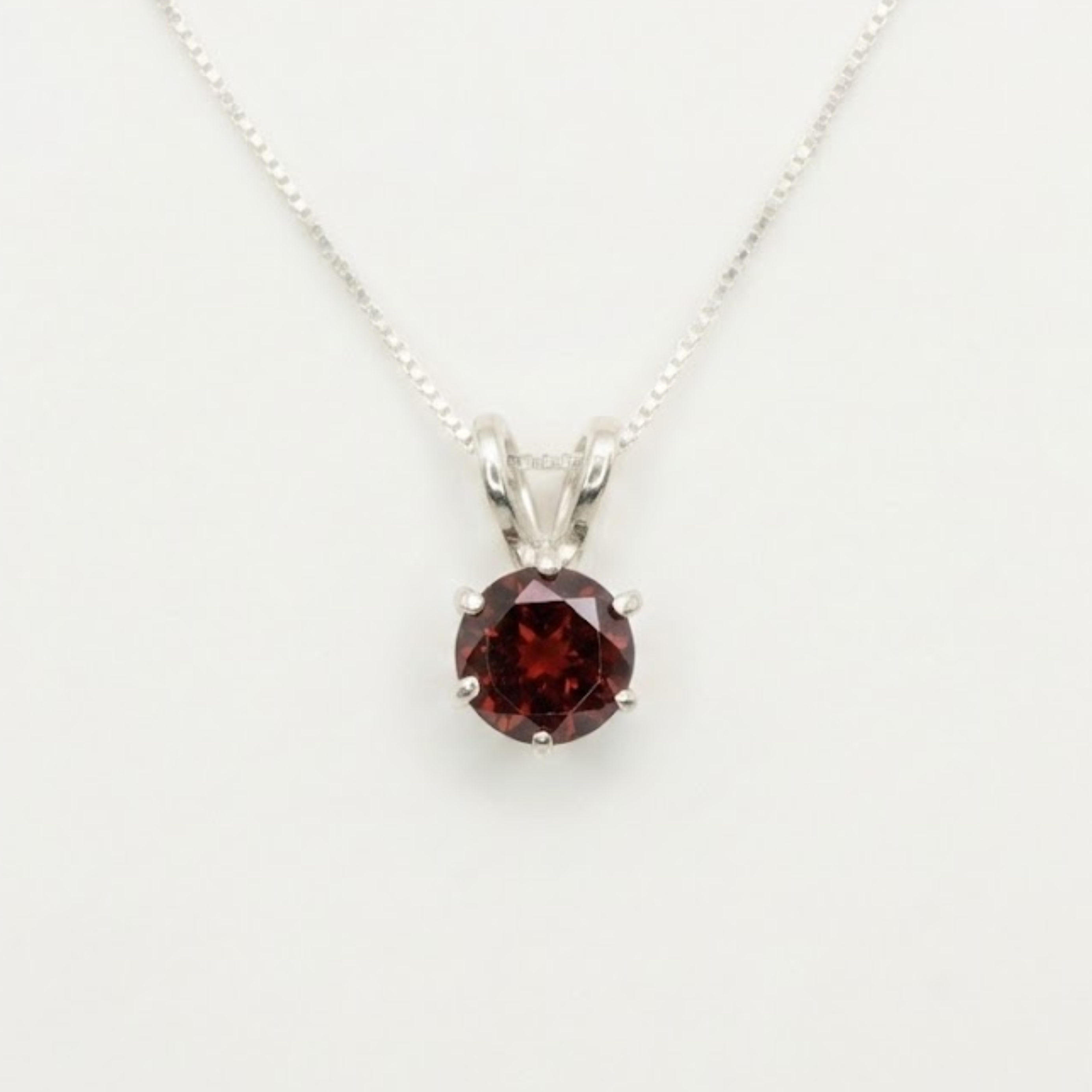Dainty Garnet Pendant, January Birthstone Necklace, Round Red Garnet Pendant