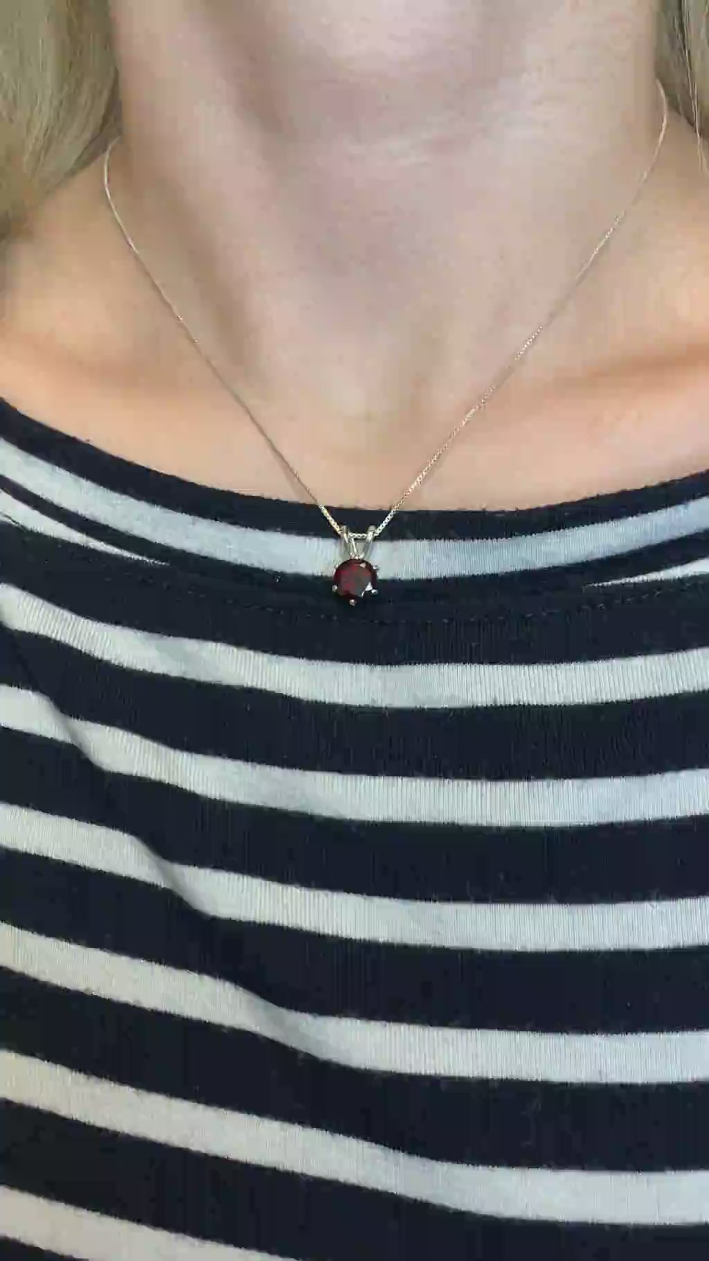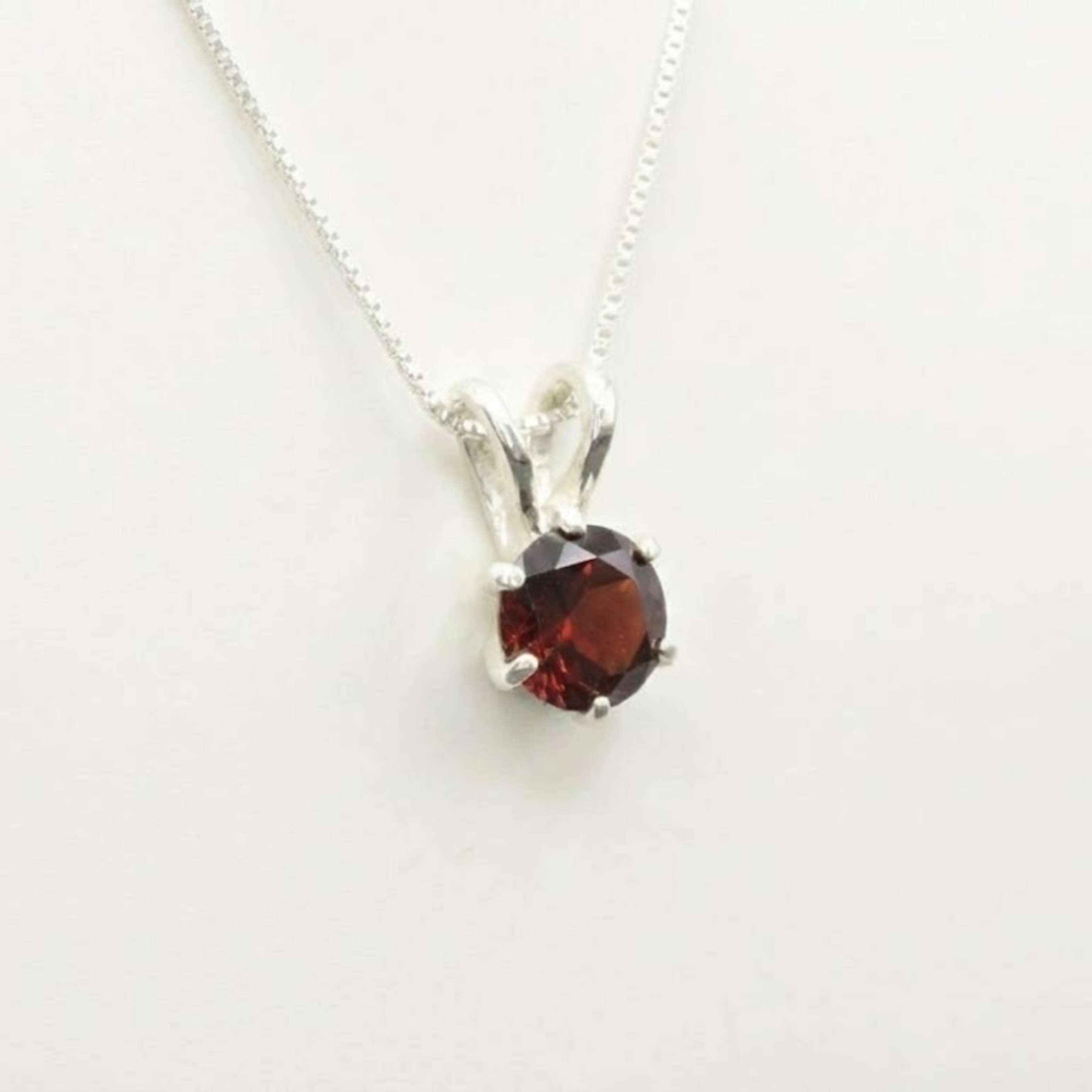 Dainty Garnet Pendant set with a Natural Garnet in a deep red color, at 7mm, size (1 Cts), from Mozambique. Solid 925 Sterling Silver ☞ made to last. Matching Earrings & Ring - please ask me Details: • Natural Garnet sourced from Mozambique • Garnet: 7mm, 1 Cts, diamond cut • Pendant Height 13mm, Width 7mm • Free Complimentary Chain • Solid 925 Sterling Silver ❀ Each Natural Gem is unique & will have Slight variations from the product pictures "no two Natural Stones are alike" SKU 2748