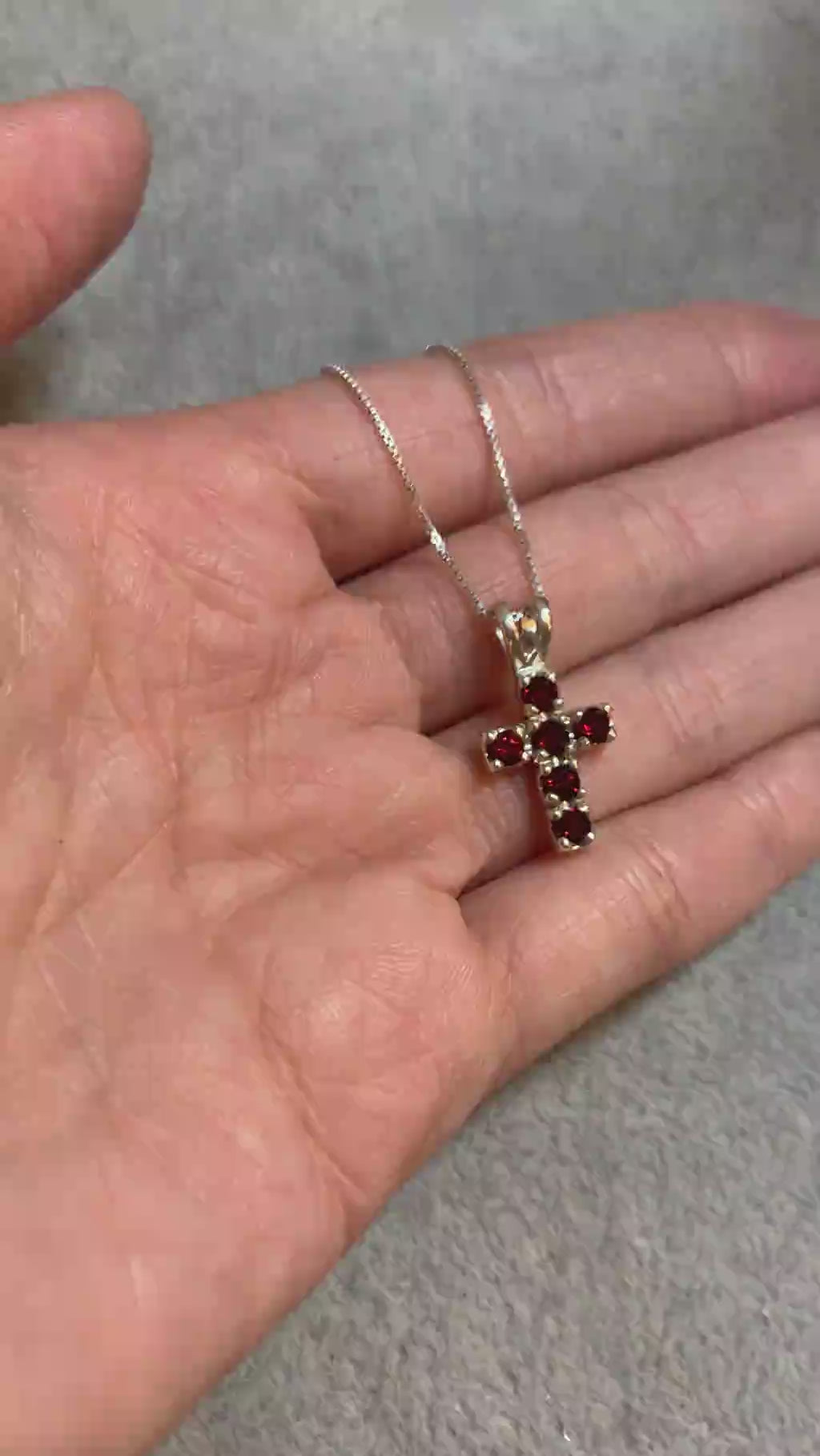 Garnet Cross Pendant set with a Natural Garnet in a perfect diamond cut & deep red color, at size 3mm (1Cts combined) from Mozambique.