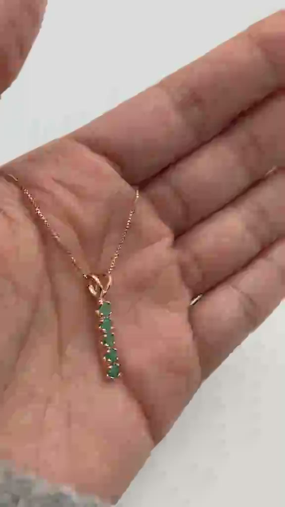 Emerald Rose Gold Necklace set with Natural Emerald in a diamond cut & natural green color, at size 3mm each (1Ct combined) from Colombia.