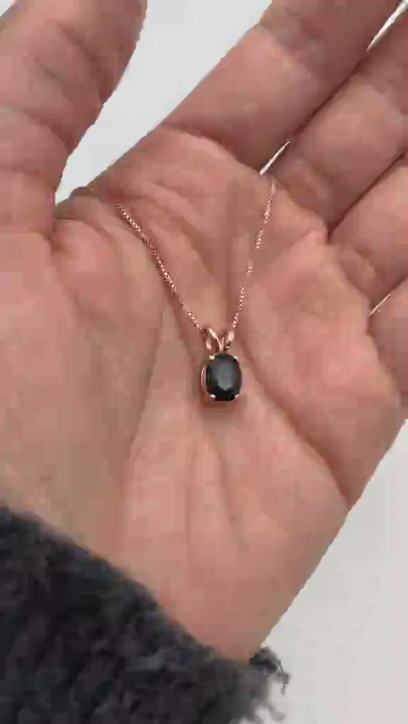 Onyx Rose Gold Necklace set with a Natural Onyx in a top grade & stunning black color, at 8x6mm size (2 Cts) from the Baltic Sea.