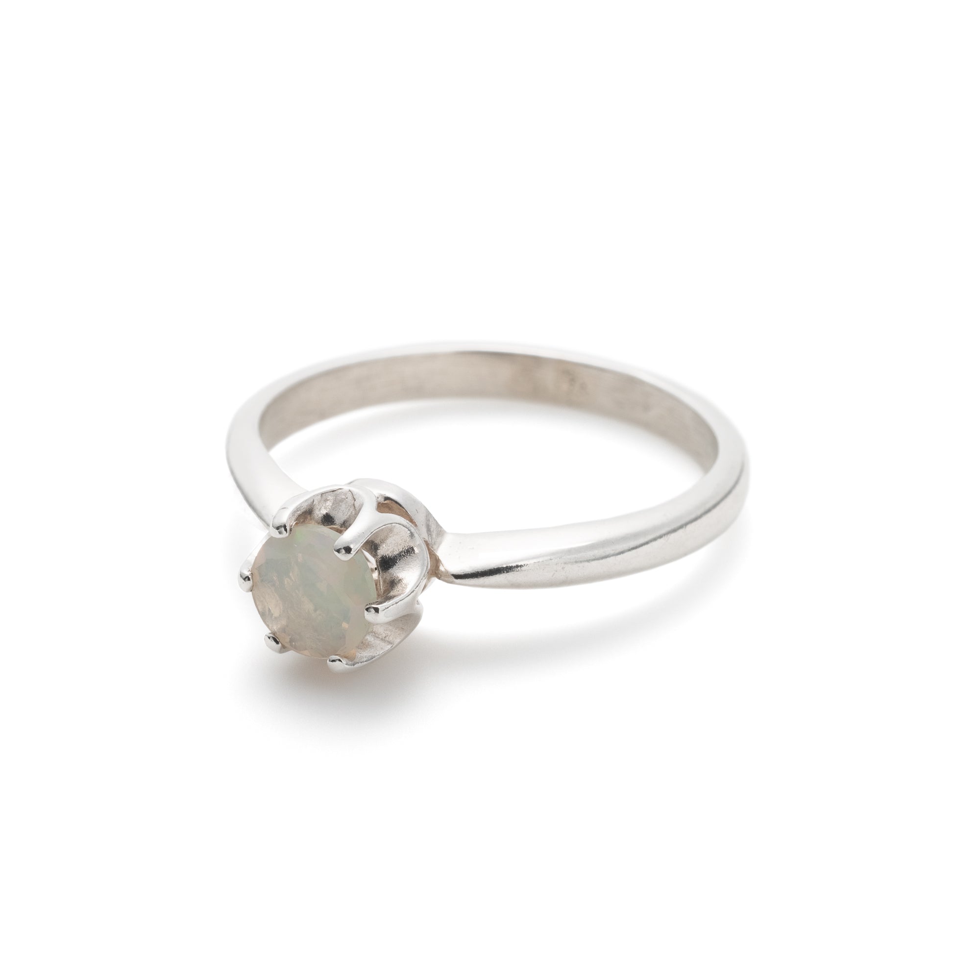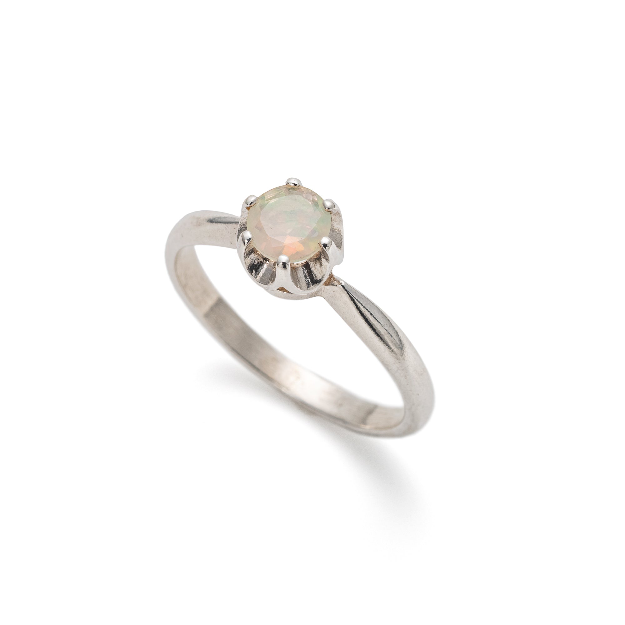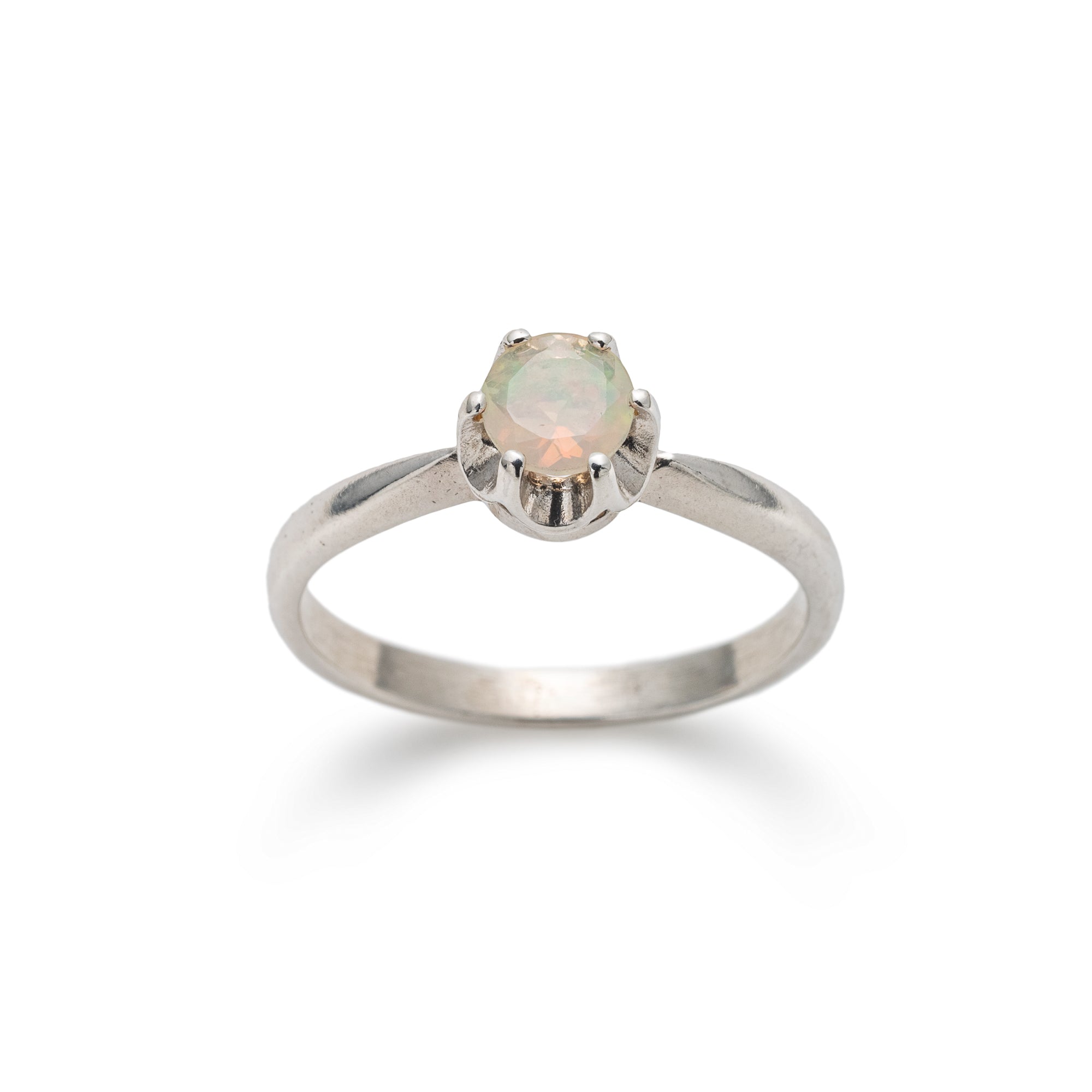Ethiopian Fire Opal Ring set with a Natural Ethiopian Opal - Fire Opal in a top grade with natural fire patterns, at 5mm (0.6 Cts) from Ethiopia.