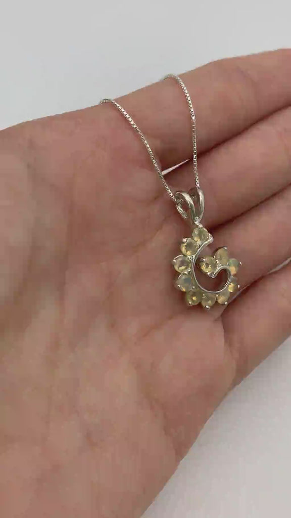 Fire Opal Pendant - Spiral Opal Necklace, October Birthstone Necklace