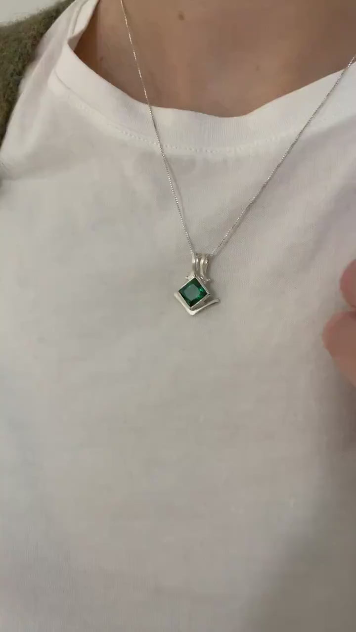 Square Emerald Pendant - Green Square Necklace - Vintage Square Necklace