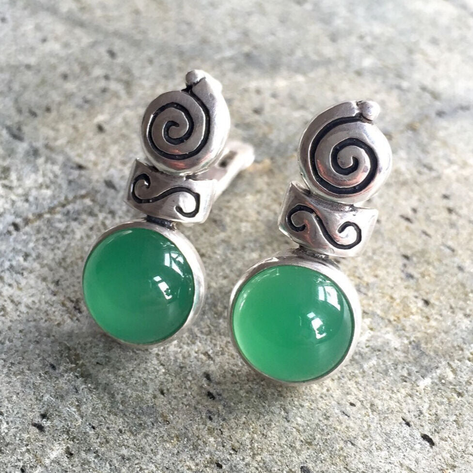 Flower Earrings, Chrysoprase Earrings, Natural Chrysoprase, May Birthstone, Lotus Earrings, Vintage Flower Earrings, Solid Silver Earrings