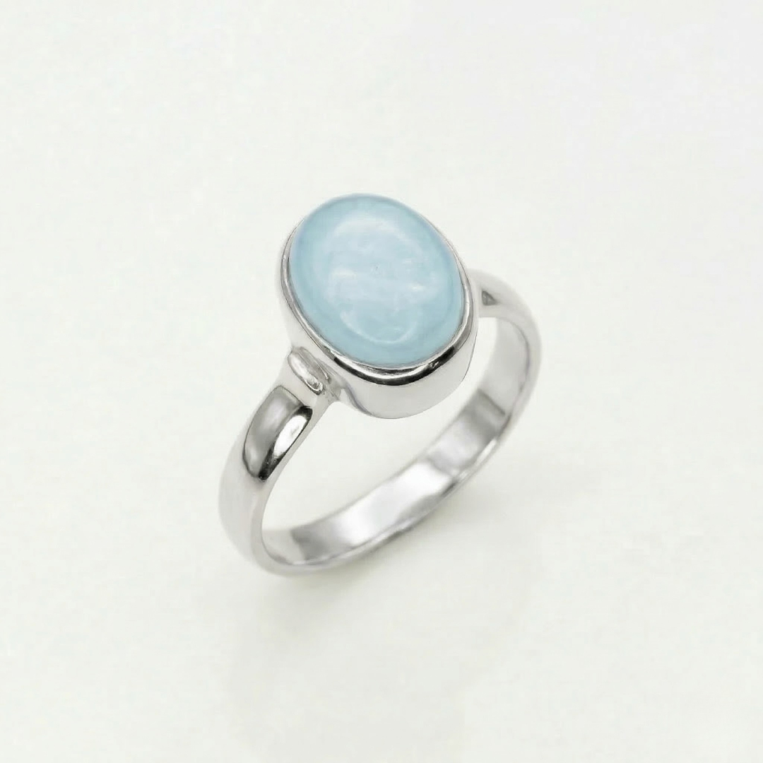 Genuine Aquamarine Ring - Blue Solitaire Ring - March Birthstone Ring