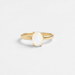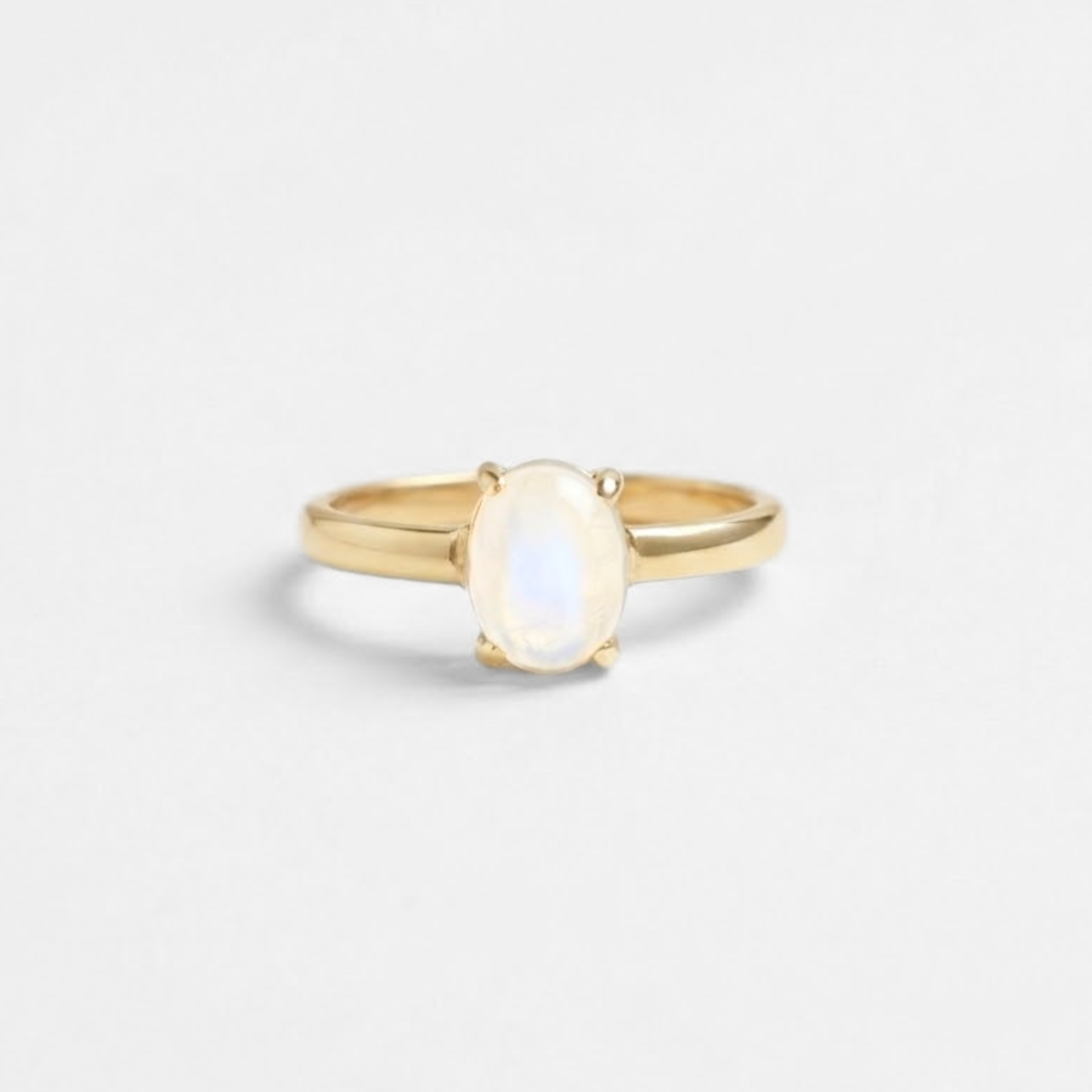 Gold Pearl Ring set with Mother of Pearl in a smooth cabochon cut and a stunning white color with natural shine & pattern, at 8x6mm (2 Cts), from Japan. Band width 1.9mm.