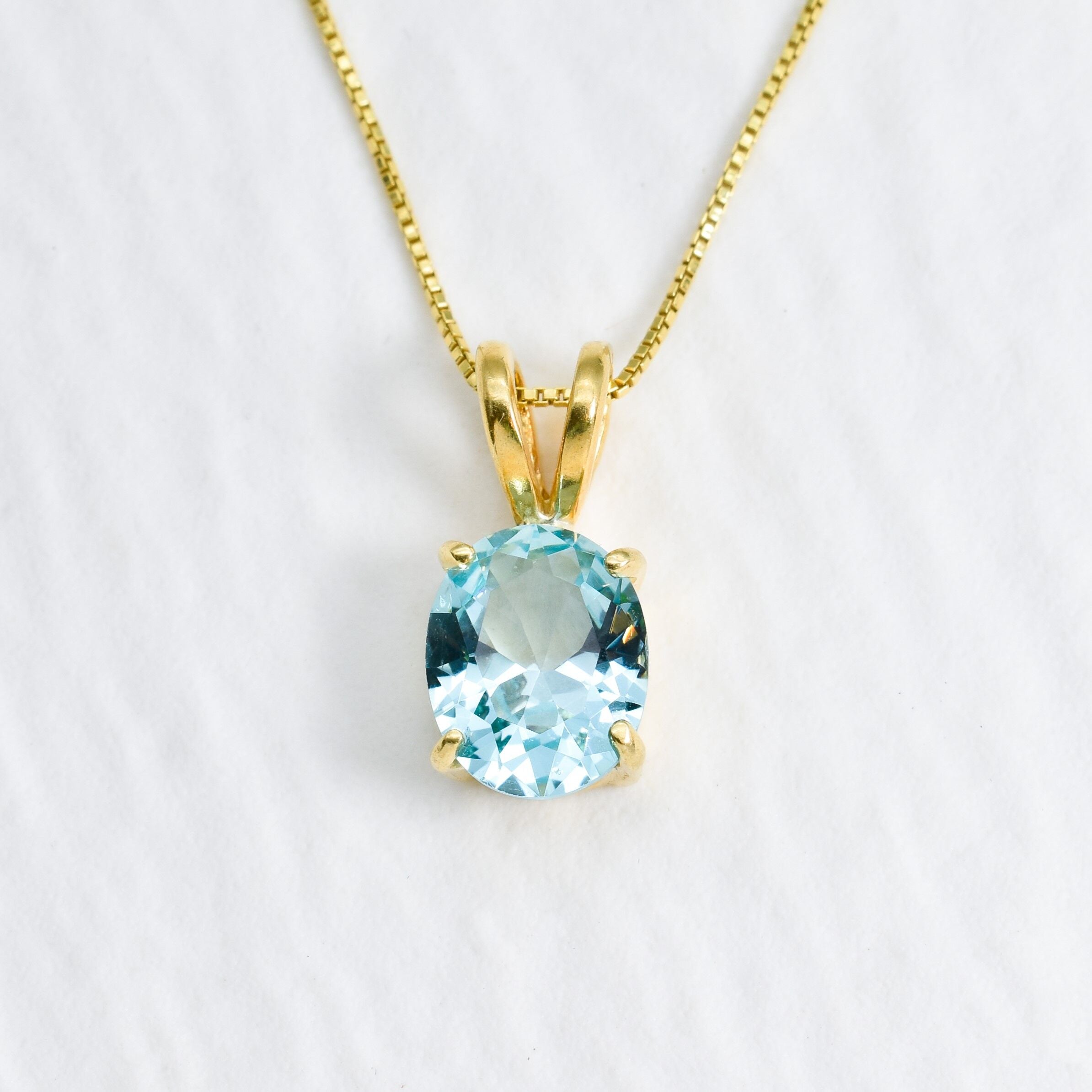 Rose Gold Aqua Pendant - Gold Aquamarine Necklace - Blue Oval Necklace