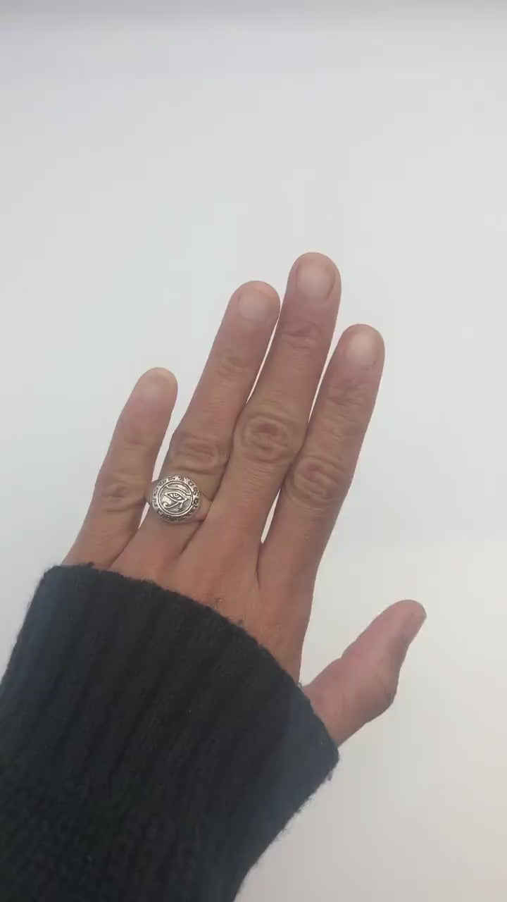 Sleek Egyptian Eye Ring in 18k Gold Vermeil, perfect for adding a touch of elegance to any outfit or special occasion.