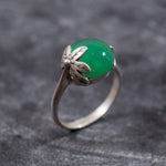 Emerald Gold Ring - Leaf Ring, May Birthstone Ring, Vintage Leaf Ring