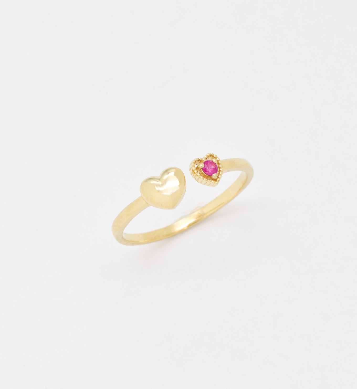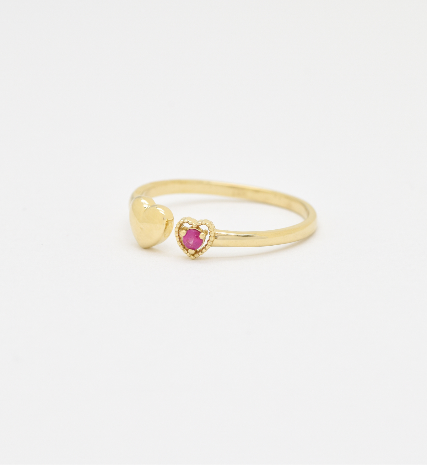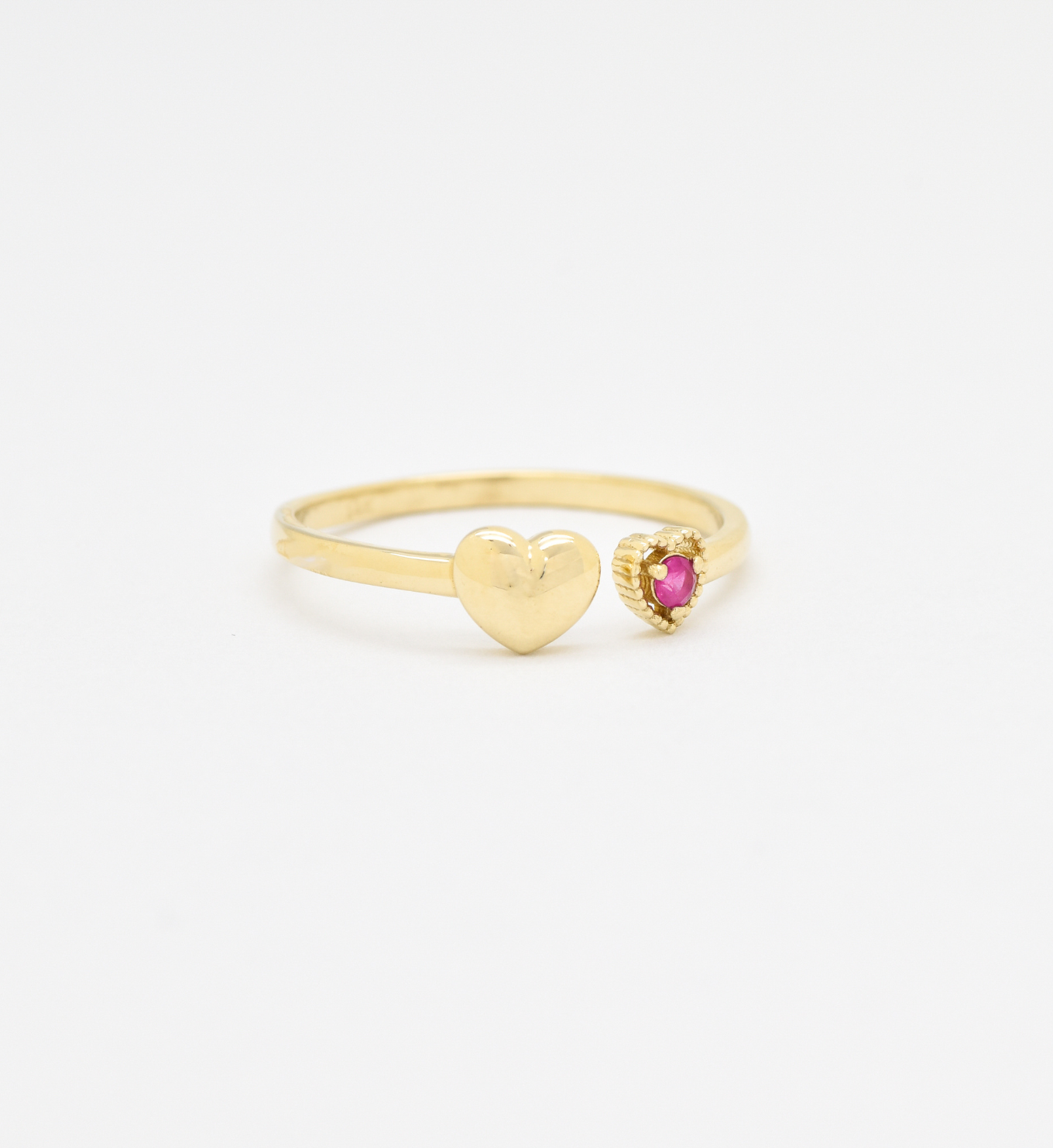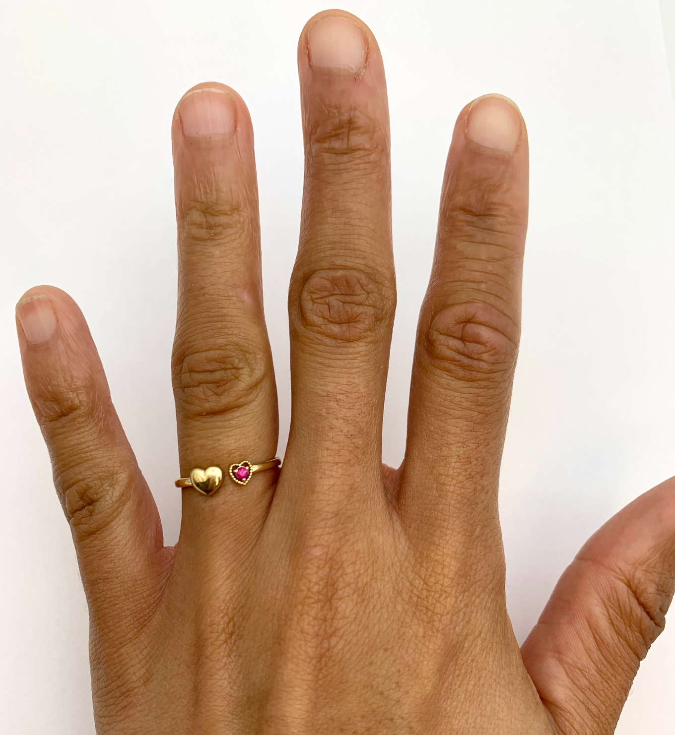 Genuine Red Ruby Ring - Solid 14k Gold Open Ring - Dainty Heart Ruby Ring