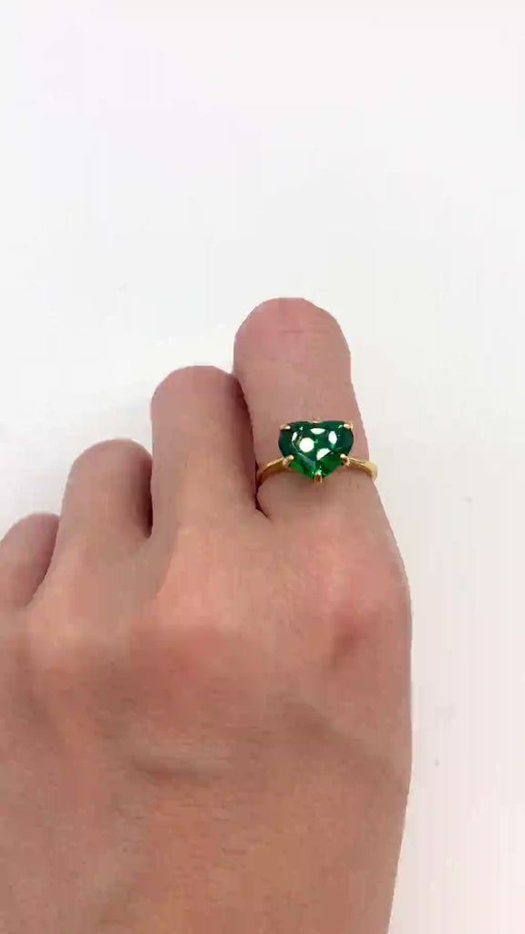 18k Gold Vermeil ring with heart-shaped emerald, a beautiful May birthstone gift for any occasion or daily wear.
