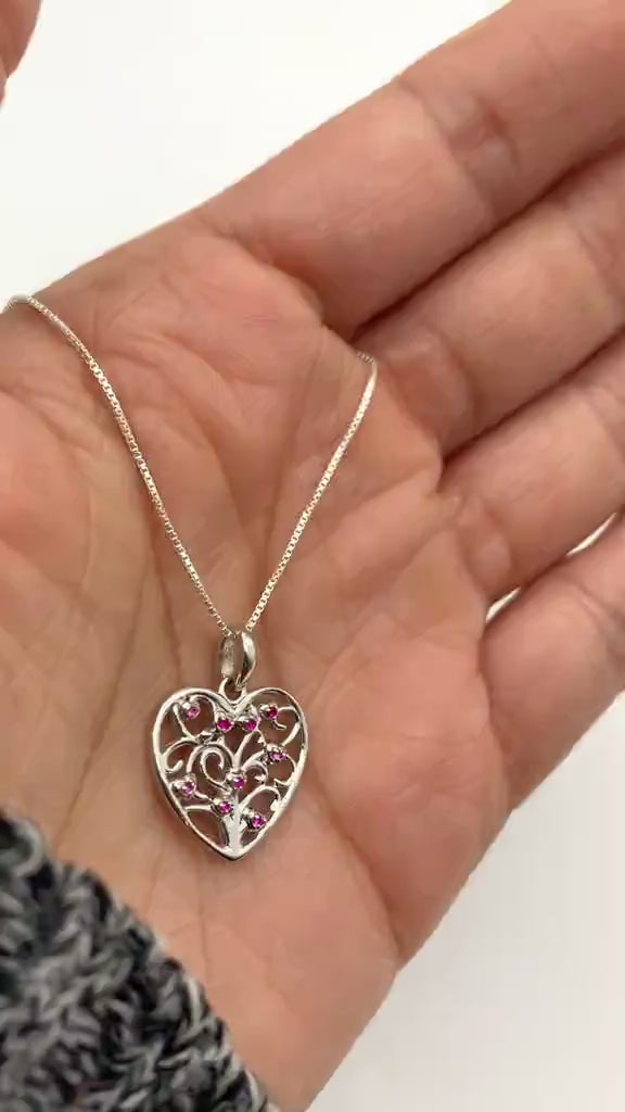 Ruby Heart Necklace - Silver Heart Necklace - Silver Ruby Necklace