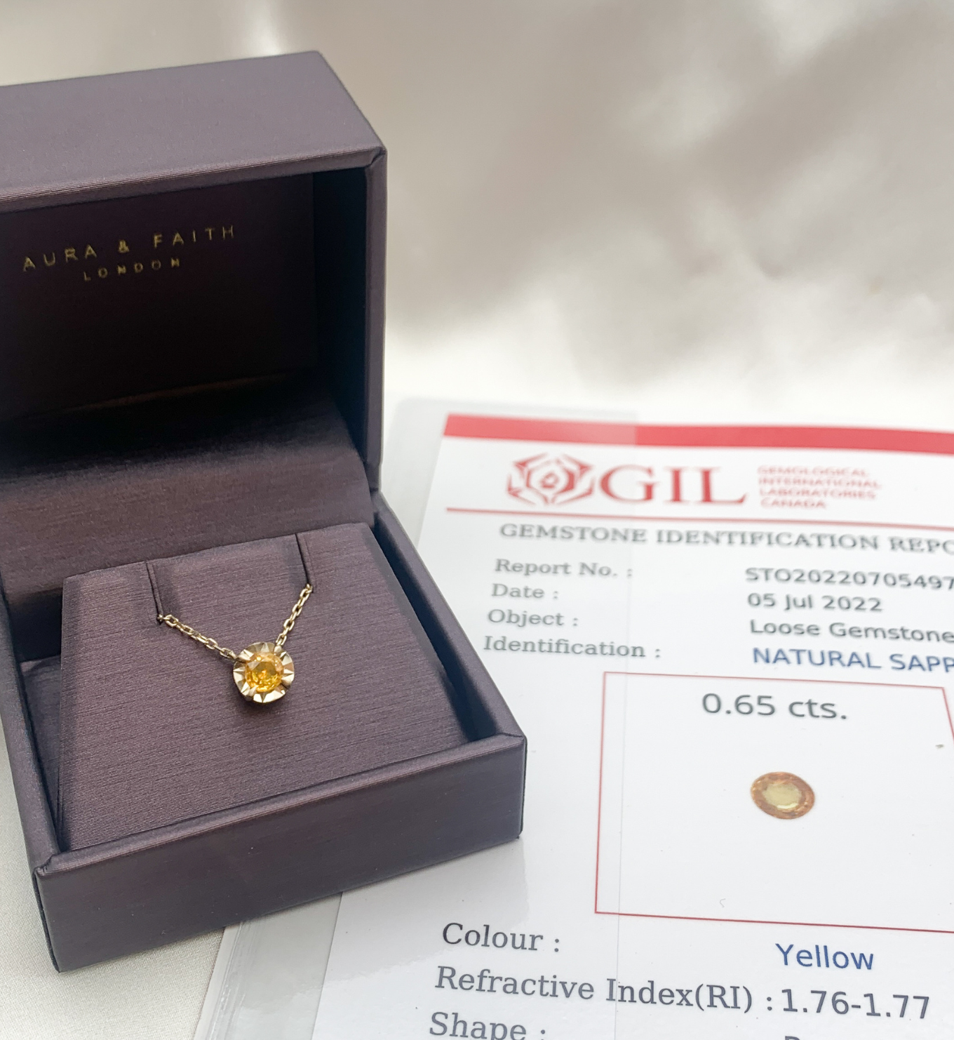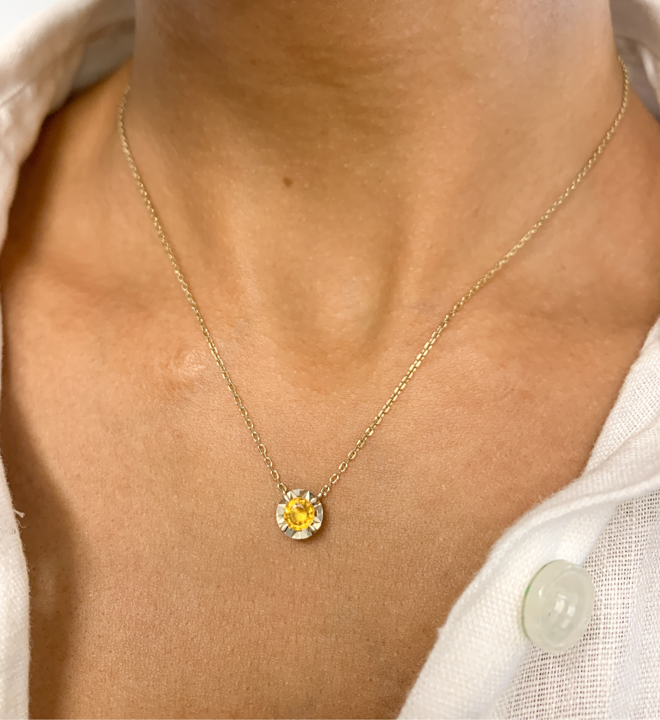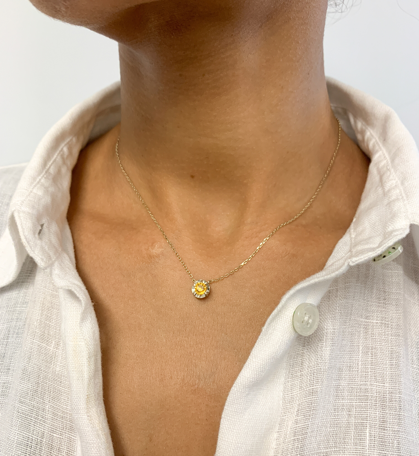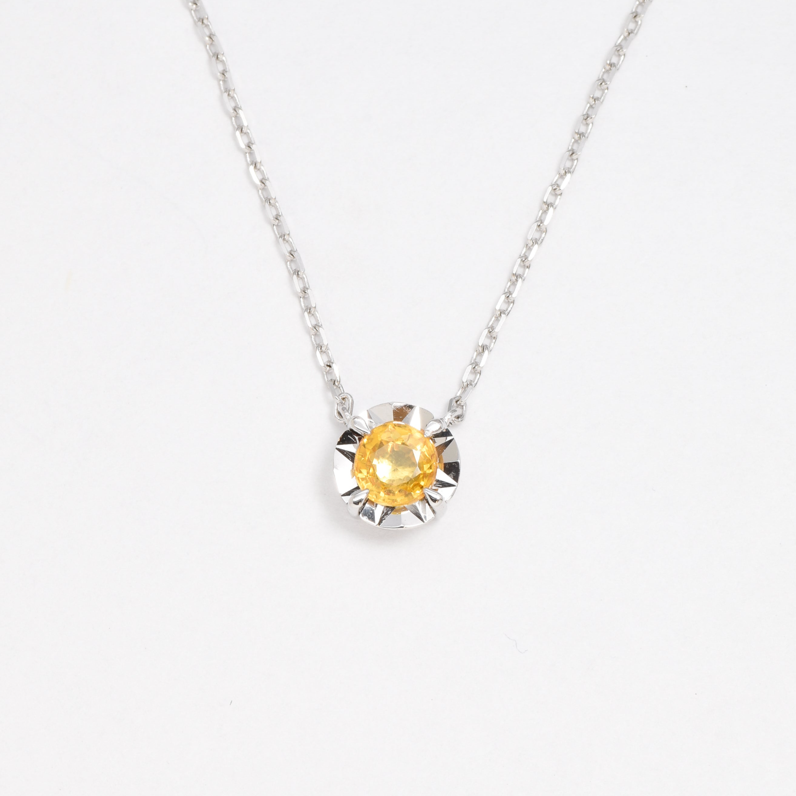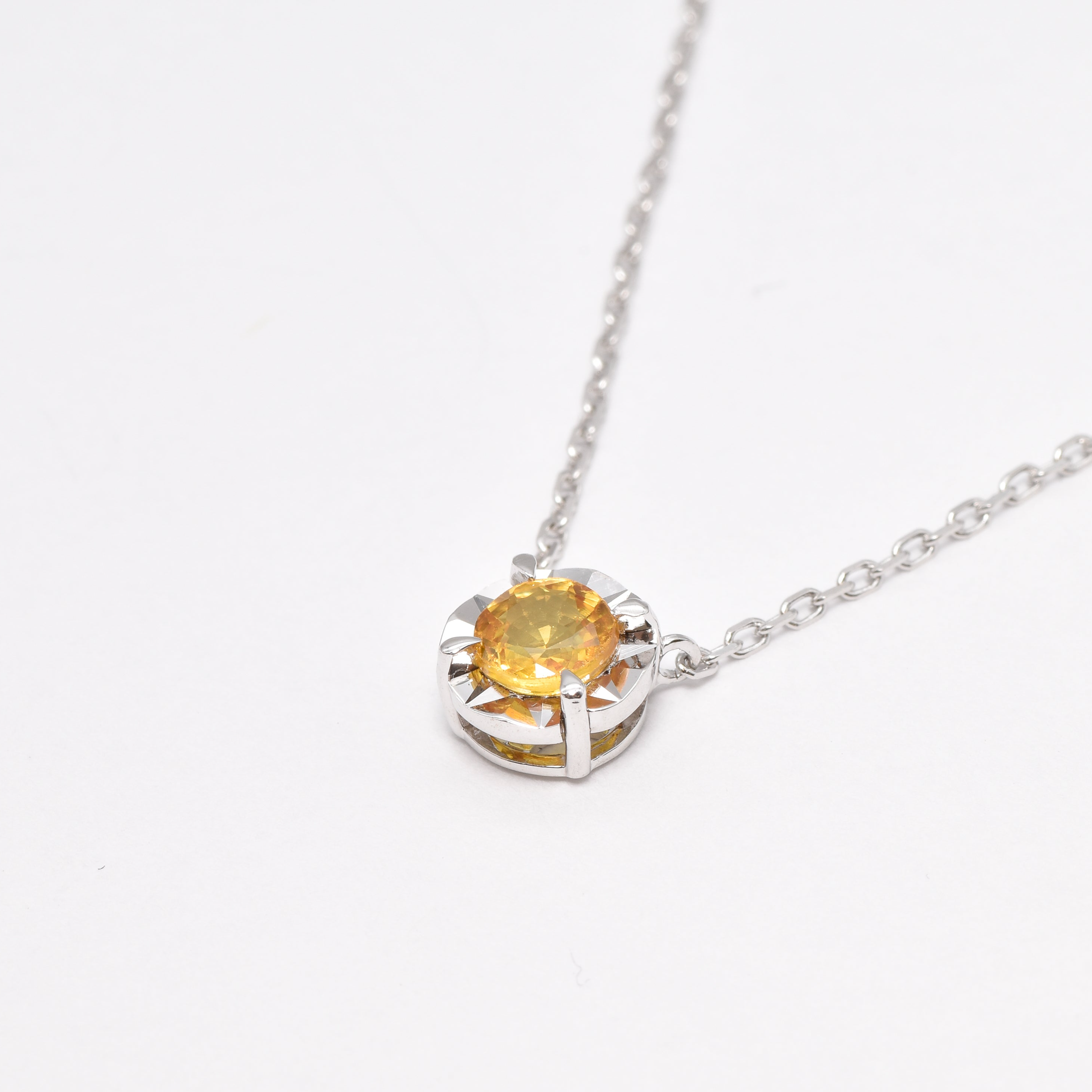Certified Yellow Sapphire Necklace set with Natural Sapphire, size 5 millimeters diameter, 0.65 Carats.