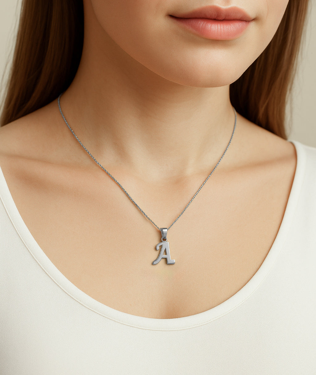 White Gold Letter Pendant - Initial Letter Charm - Personalized Letter Necklace