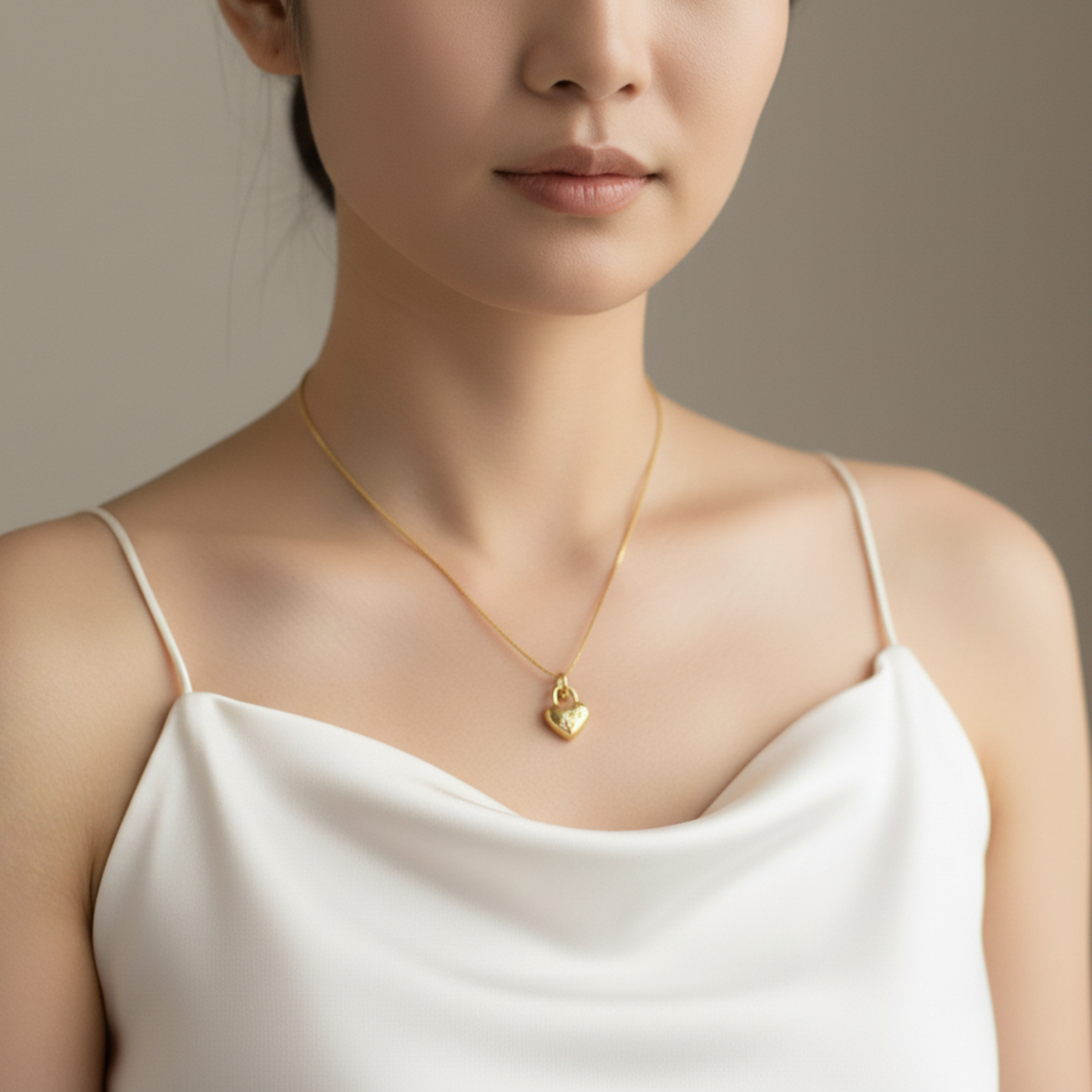 Gold Heart Pendant Necklace featuring a charming heart lock design, perfect for daily wear and special celebrations.