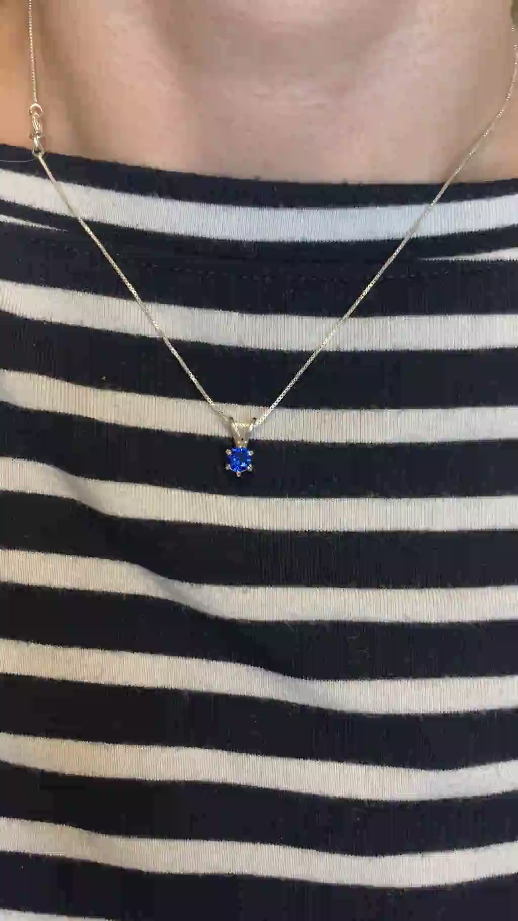 925 Sterling Silver Created Blue Sapphire Pendant in Solitaire setting, perfect birthday gift for September birthdays.