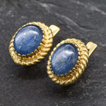 Stylish silver stud earrings witoval blue kyanite gemstones and intricate rope detailing.