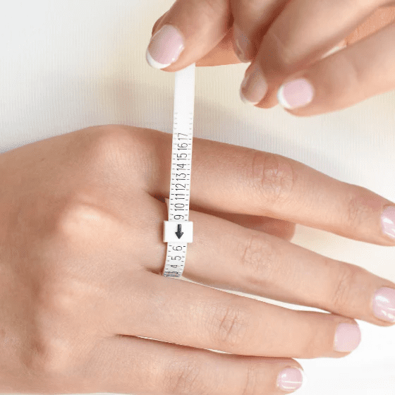 The easiest at-home method to measure your ring size is to simply order a plastic ring sizer - it looks like a zip-tie and costs just a few dollars. Another option might be to simply pop into a local jewelry store where they can help you determine your size as well. However we would always recommend to stay away from string, tape, ruler or paper measurements at home - these are inaccurate and will most likely cause more hassle with the need of resizing your ring.