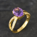 Vintage Amethyst Ring - Purple Gemstone Ring - Split Paved Silver Ring