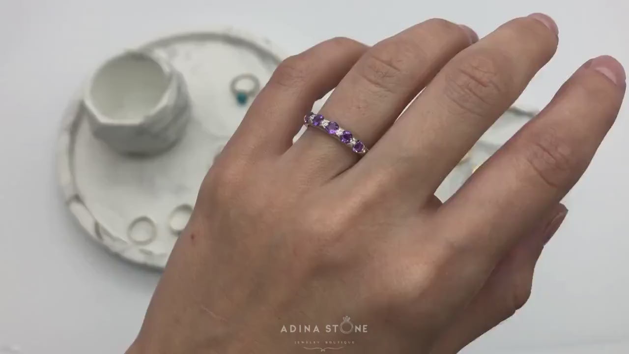 Natural Amethyst Ring made in 925 Sterling Silver with Round Natural Purple Amethyst in Solitaire with Accents setting, February Birthstone gift idea, symbolizes peace & clarity, ideal for everyday wear and perfect for birthday gifting and special occasions.