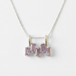 Amethyst Necklace set with Natural Amethyst in a baguette cut, flawless clarity & purple color, at 5x3mm each (2.5 Cts combined) from Brazil.