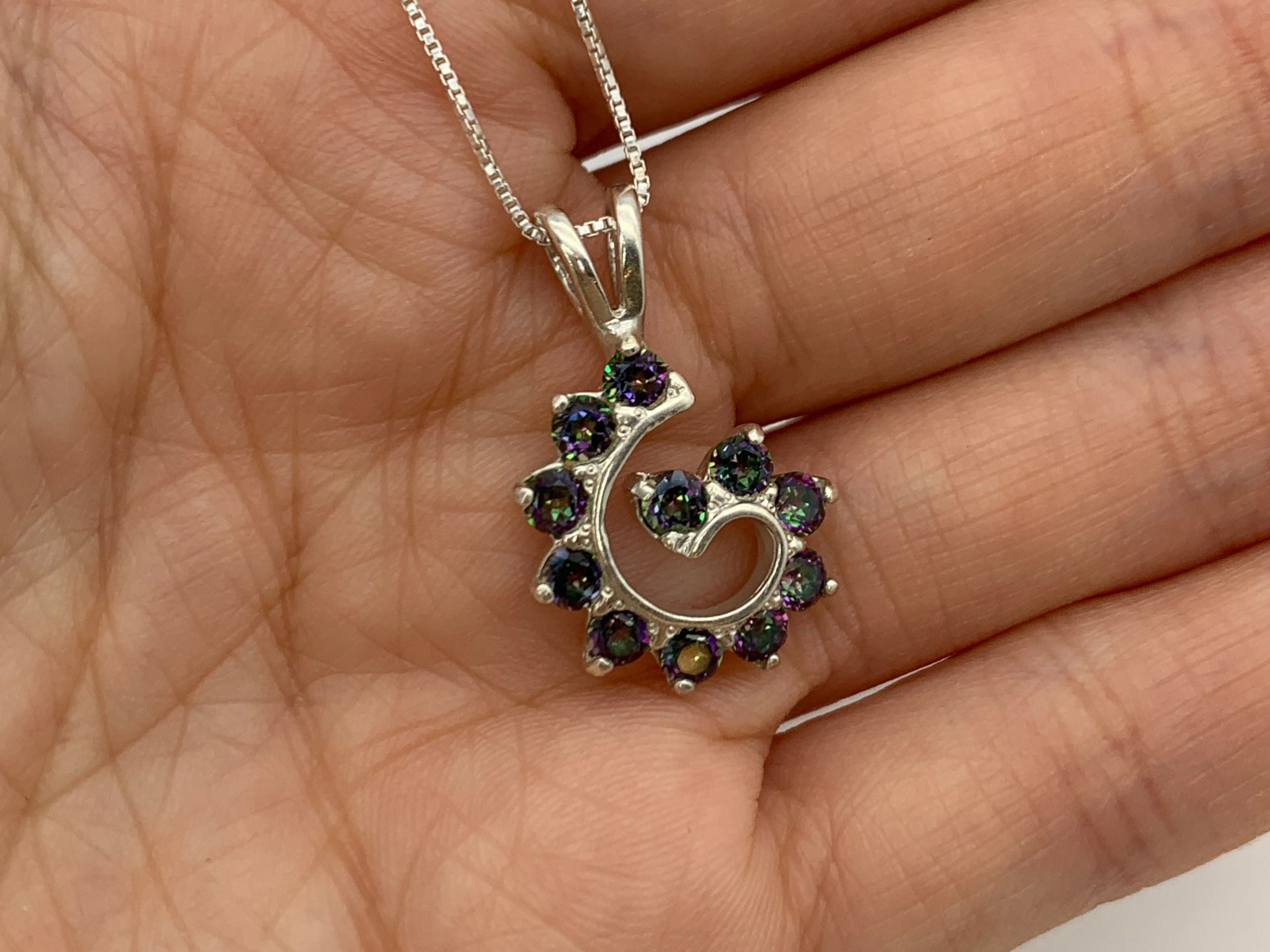 Mystic Topaz Pendant - Purple Spiral Necklace, Purple Swirl Pendant