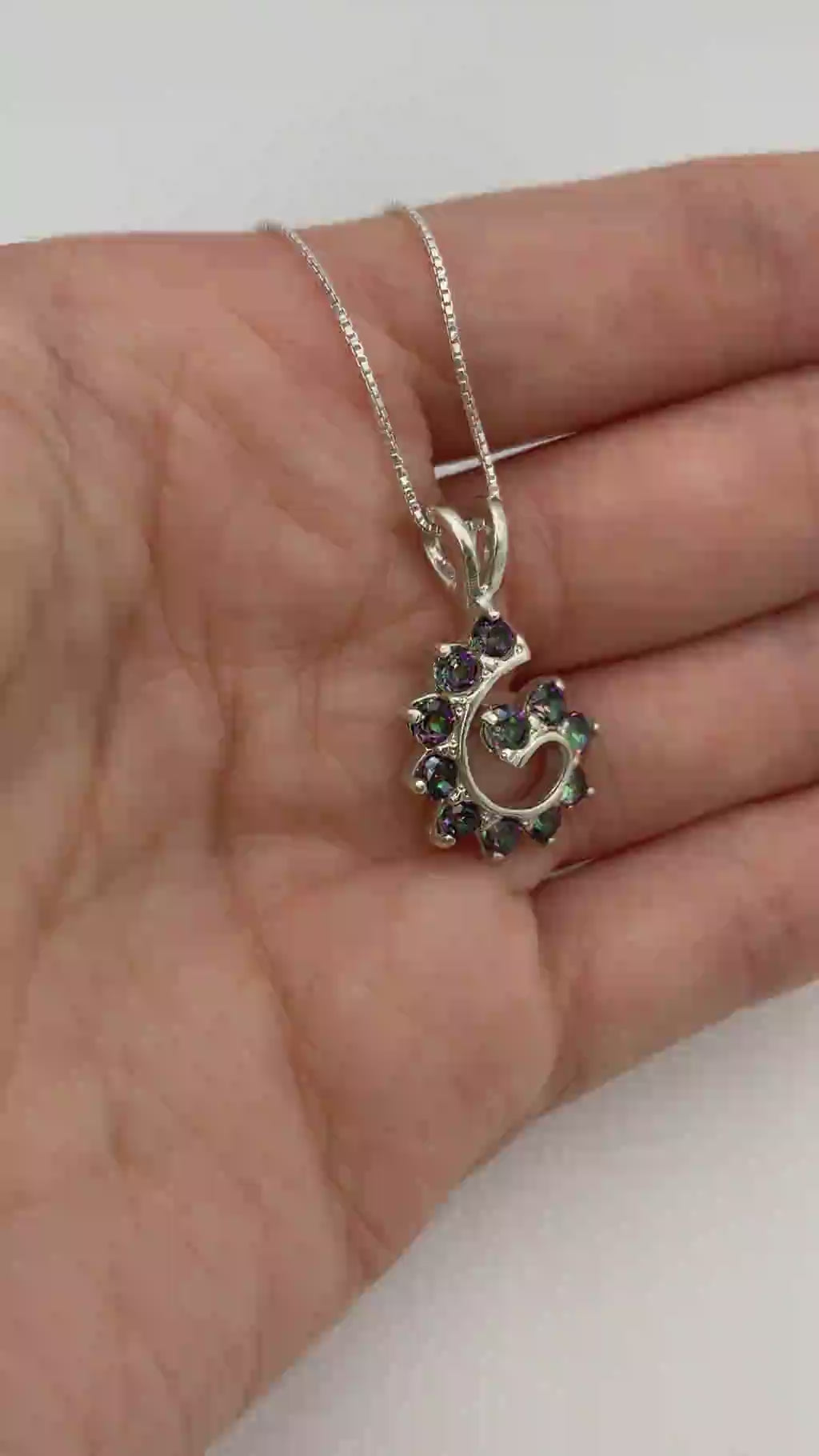 Mystic Topaz Pendant set with Natural Mystic Topaz in diamond cut & purple/green interchanging color, at 3mm each.
