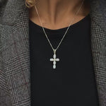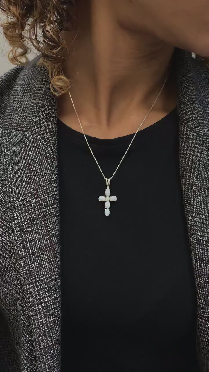 Cross Opal Pendant - Australian Opal Necklace - White Cross Statement Necklace