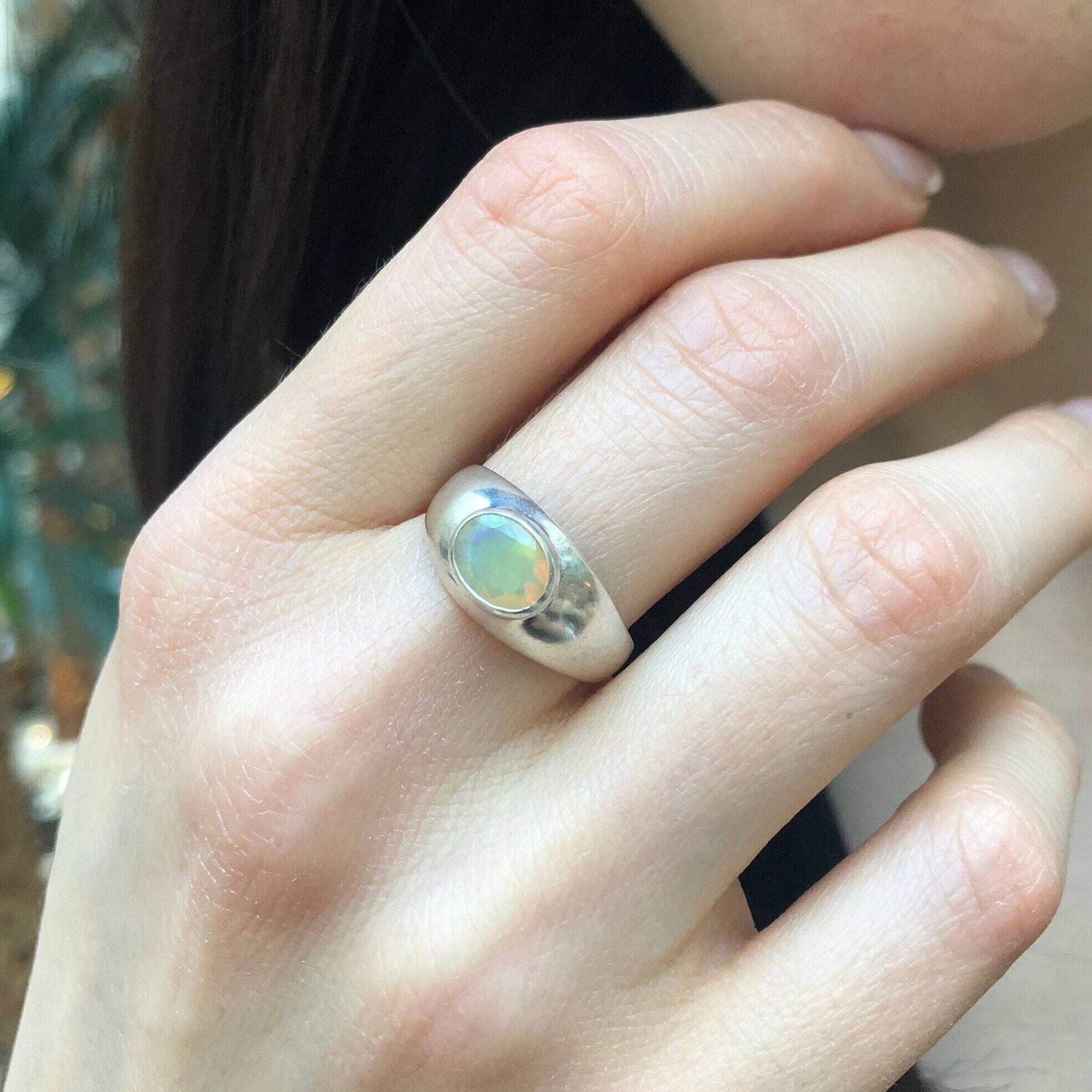 Natural Opal Ring - Vintage Dome Ring - Opal Wide Band