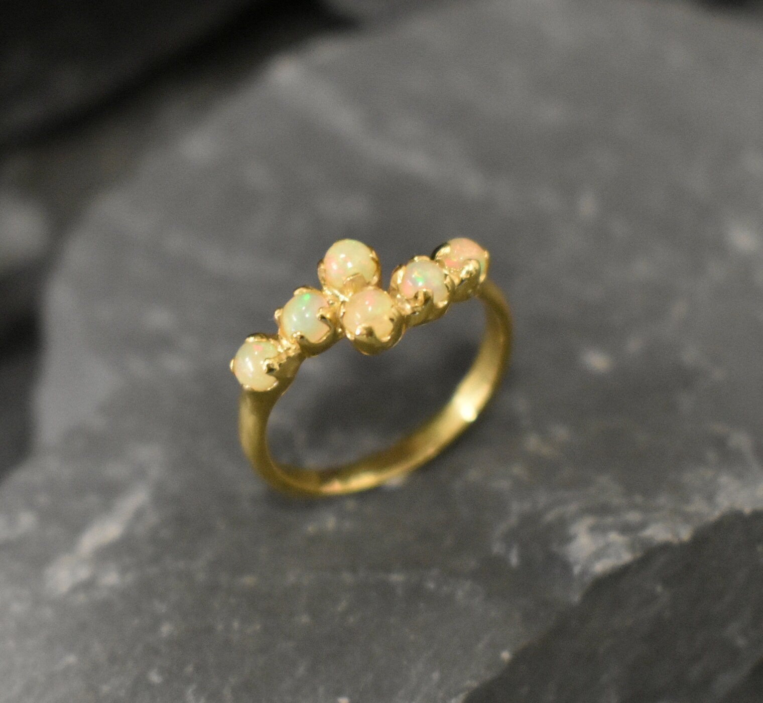 Gold Opal Ring - Fire Opal Ring - Vintage Opal Ring