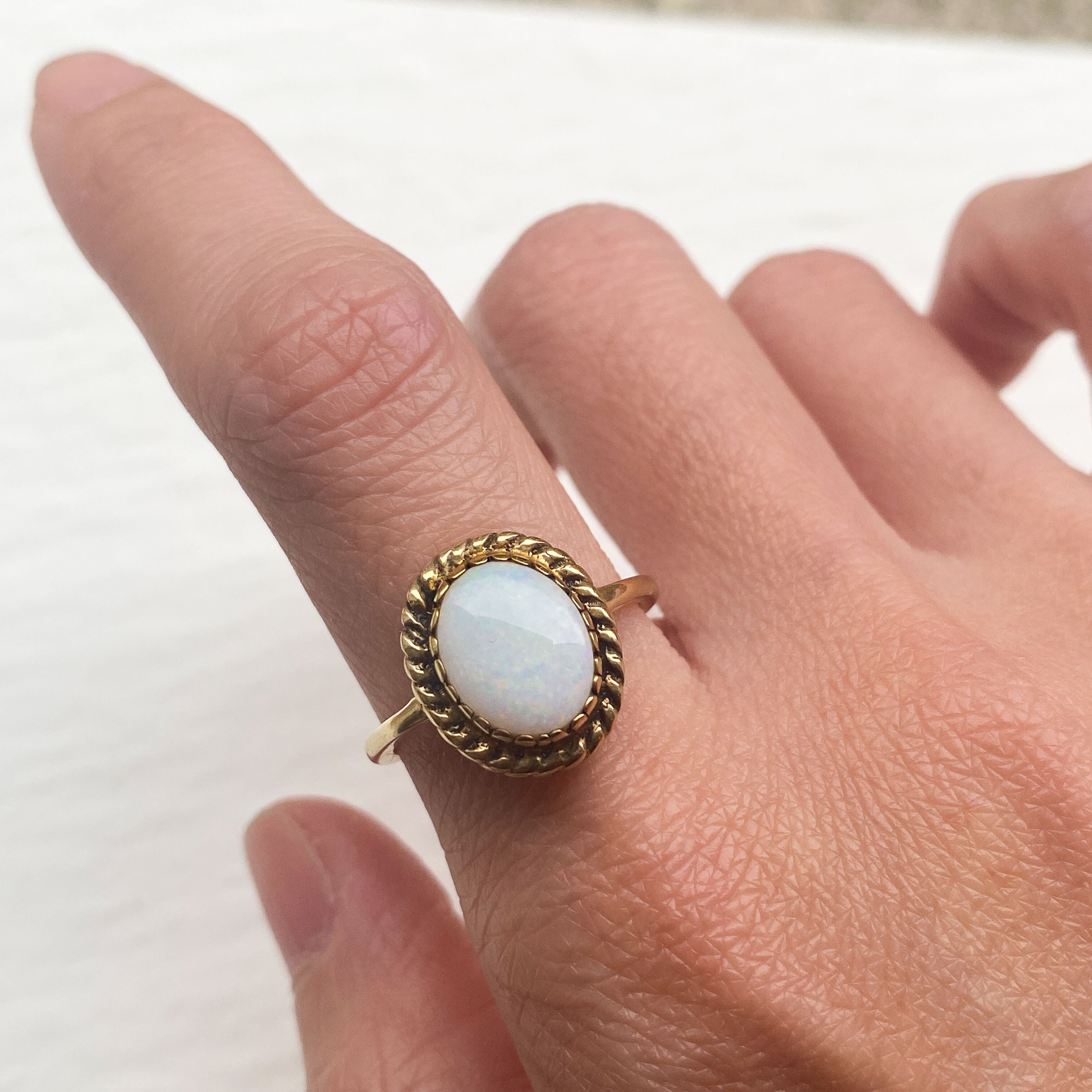 Gold Opal Ring - White Oval Ring - Vintage Bridal Ring