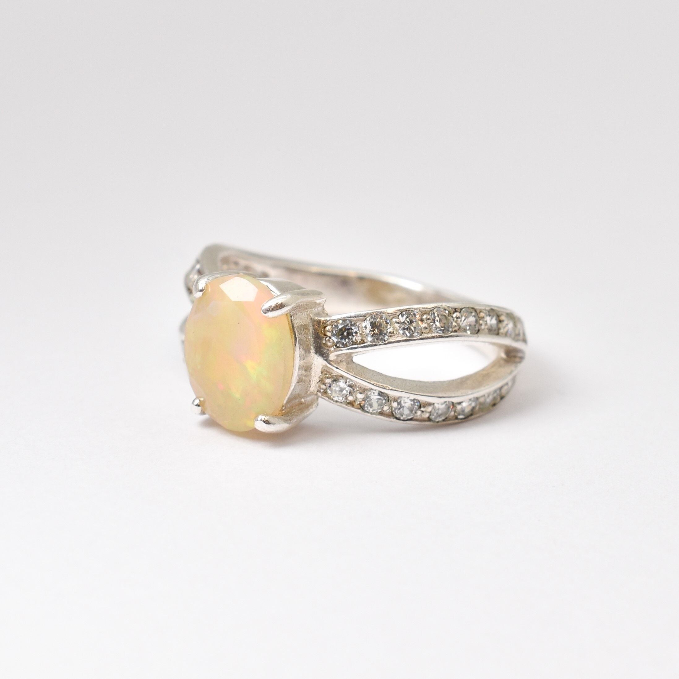 Vintage Fire Opal Ring - Real Opal Promise Ring - Split Paved Band