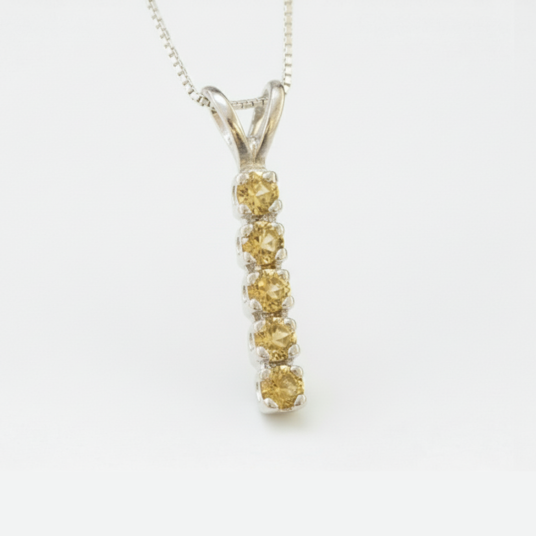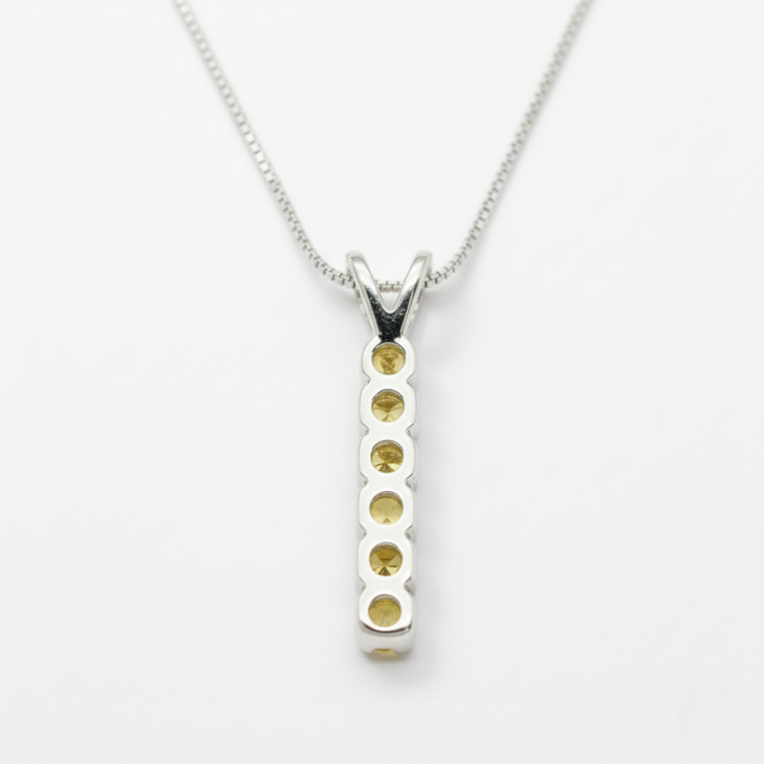 Vertical Citrine Necklace set with Natural Citrine in a perfect diamond cut, flawless clarity & yellow color, at 3mm each (1 Cts) from Brazil.