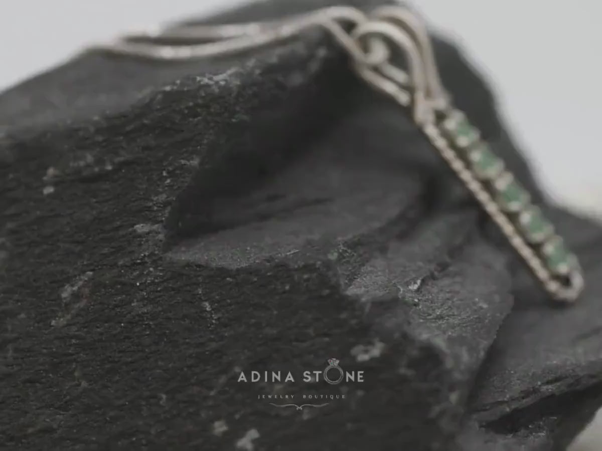 Genuine Emerald Pendant - Green Bar Necklace - Vertical Vintage Necklace