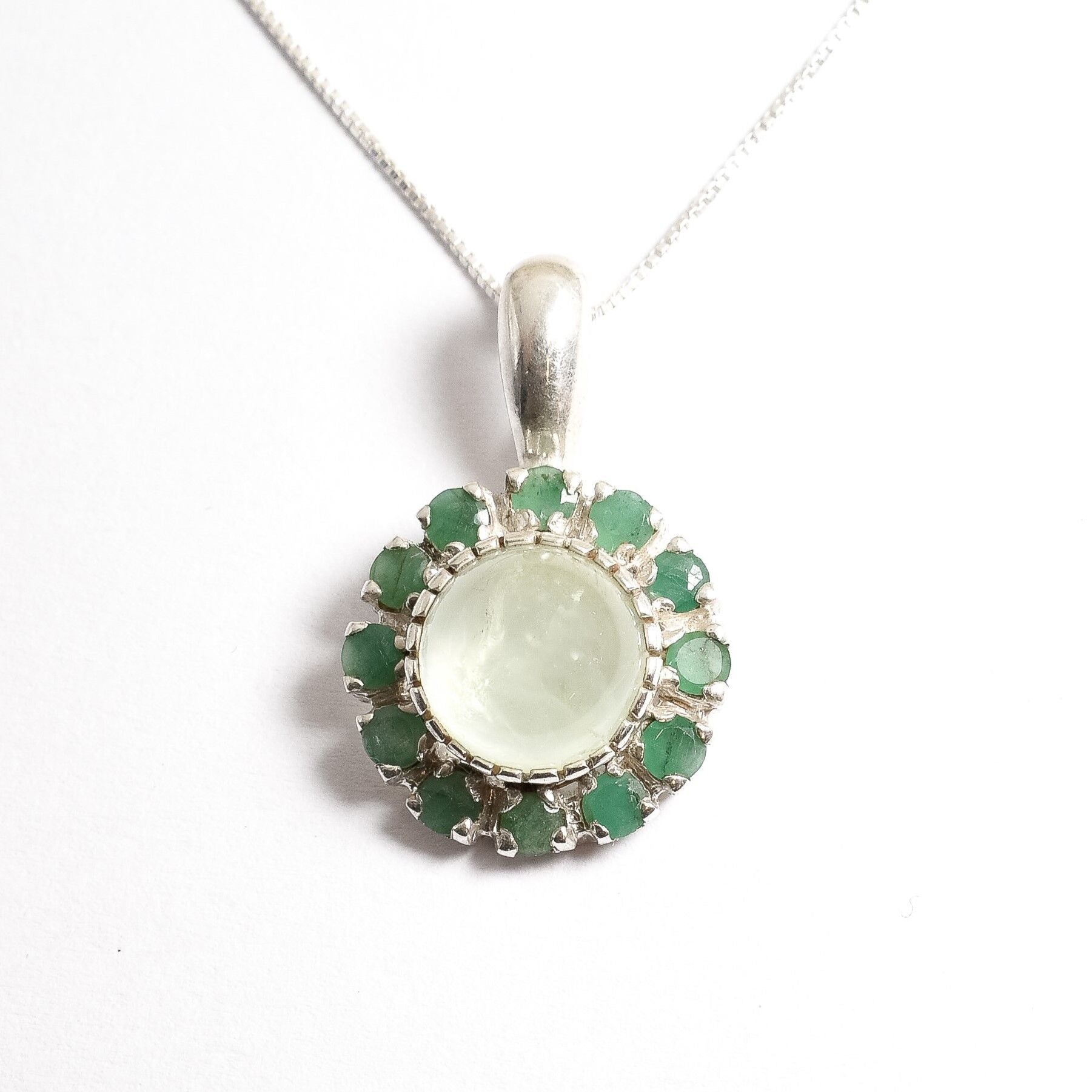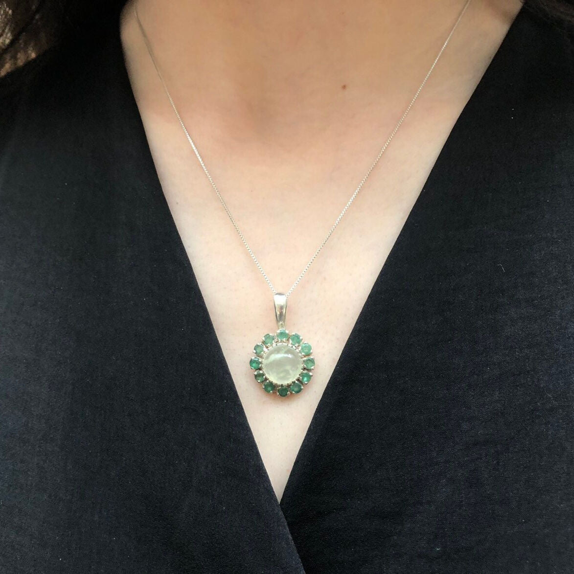 Emerald and Chrysoprase pendant with subtle shine, ideal for daily wear