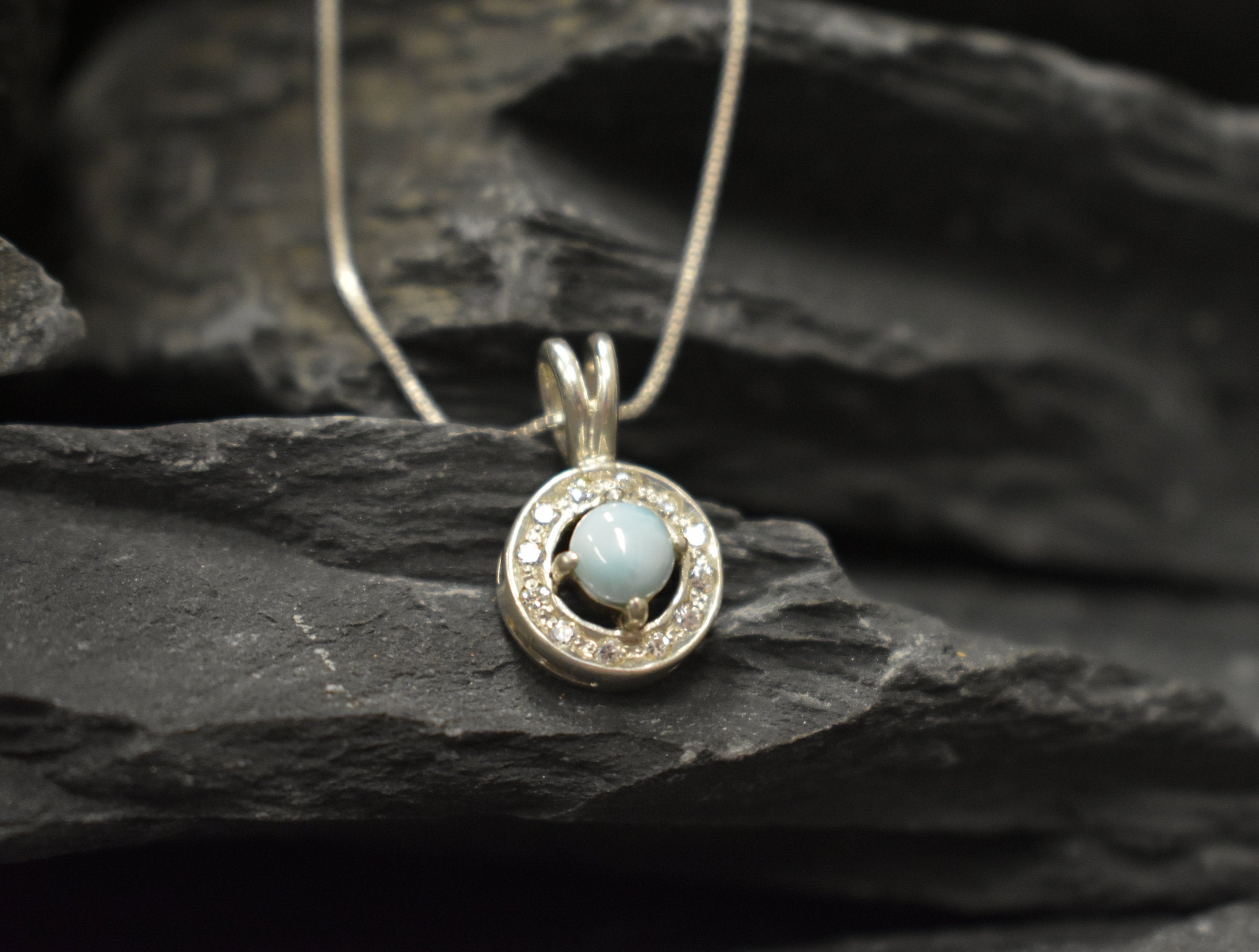 Aquamarine Pendant, Natural Aquamarine, March Birthstone, Blue Vintage Pendant, Dainty Blue Pendant, Aquamarine Charm, Solid Silver Pendant