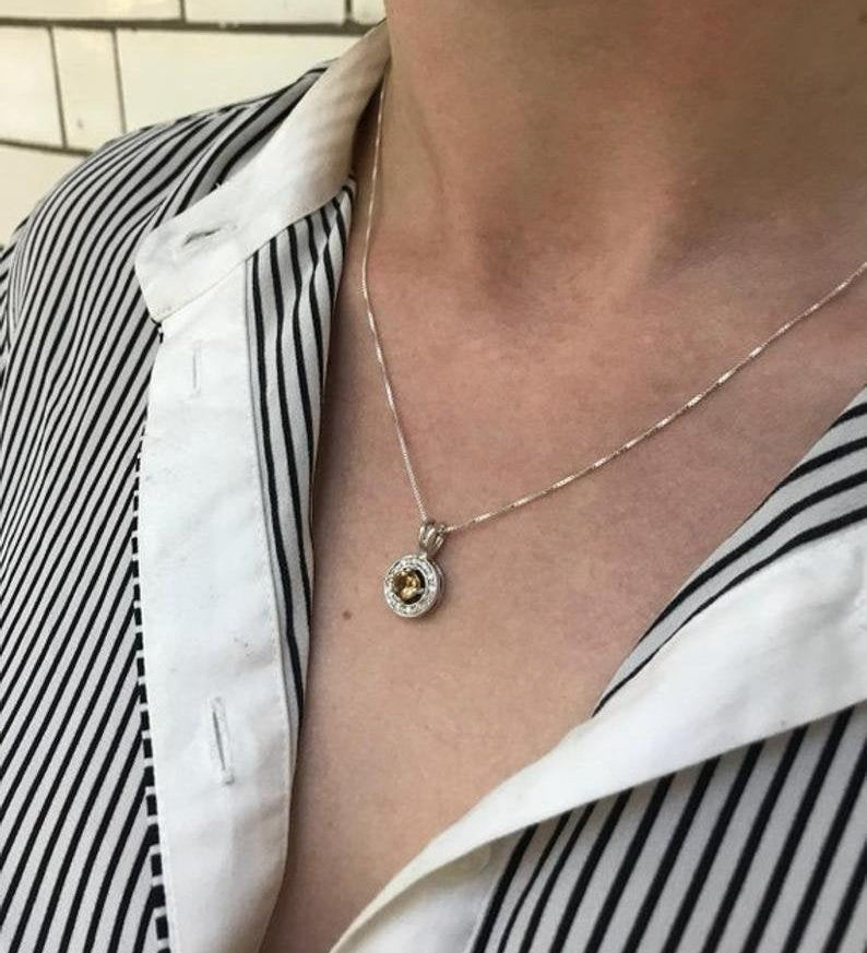 Round Citrine Pendant with CZ accent stones