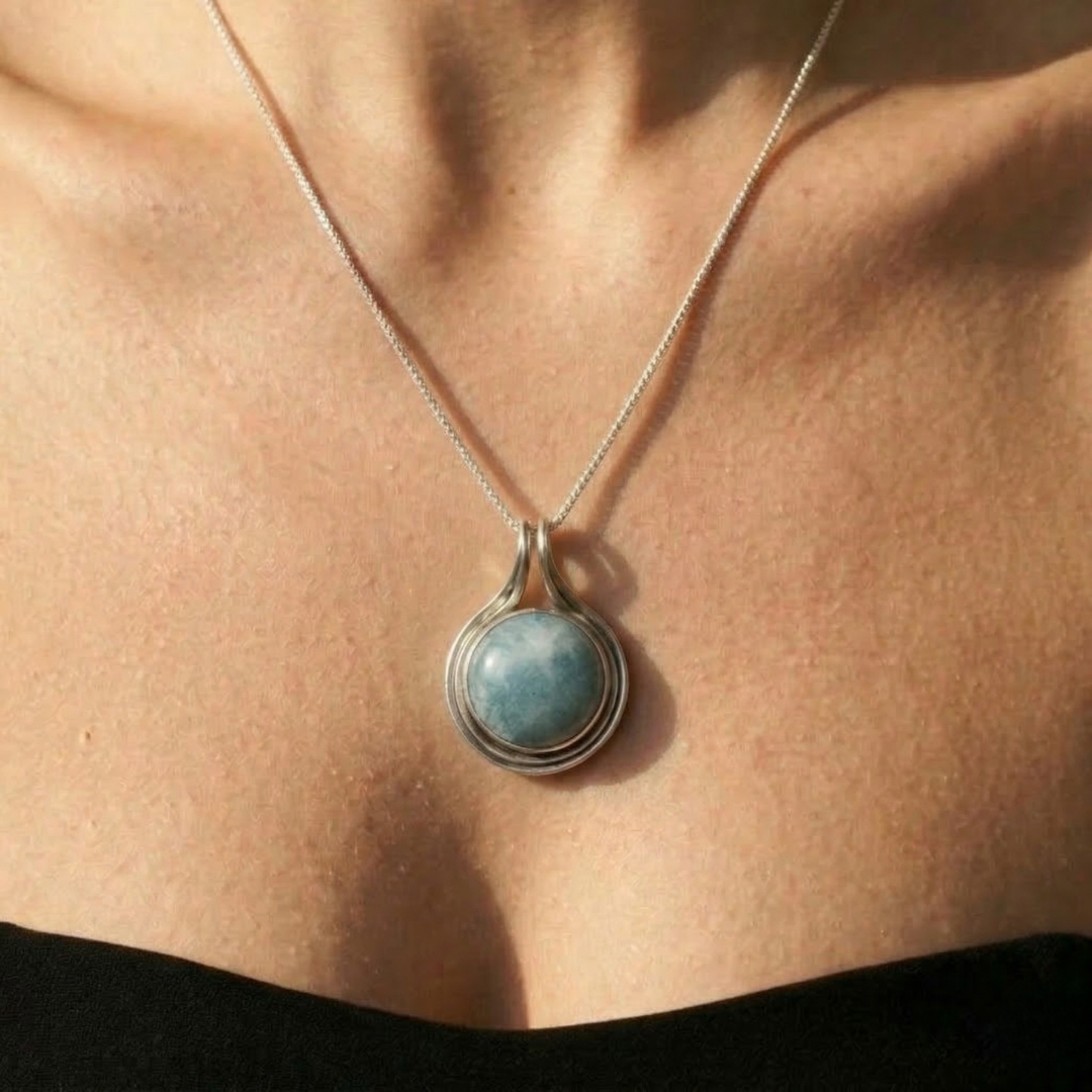 Artistic Blue Pendant, Aquamarine Pendant, Natural Aquamarine, March Birthstone, Vintage Pendant, Blue Pendant, Silver Pendant, Aquamarine