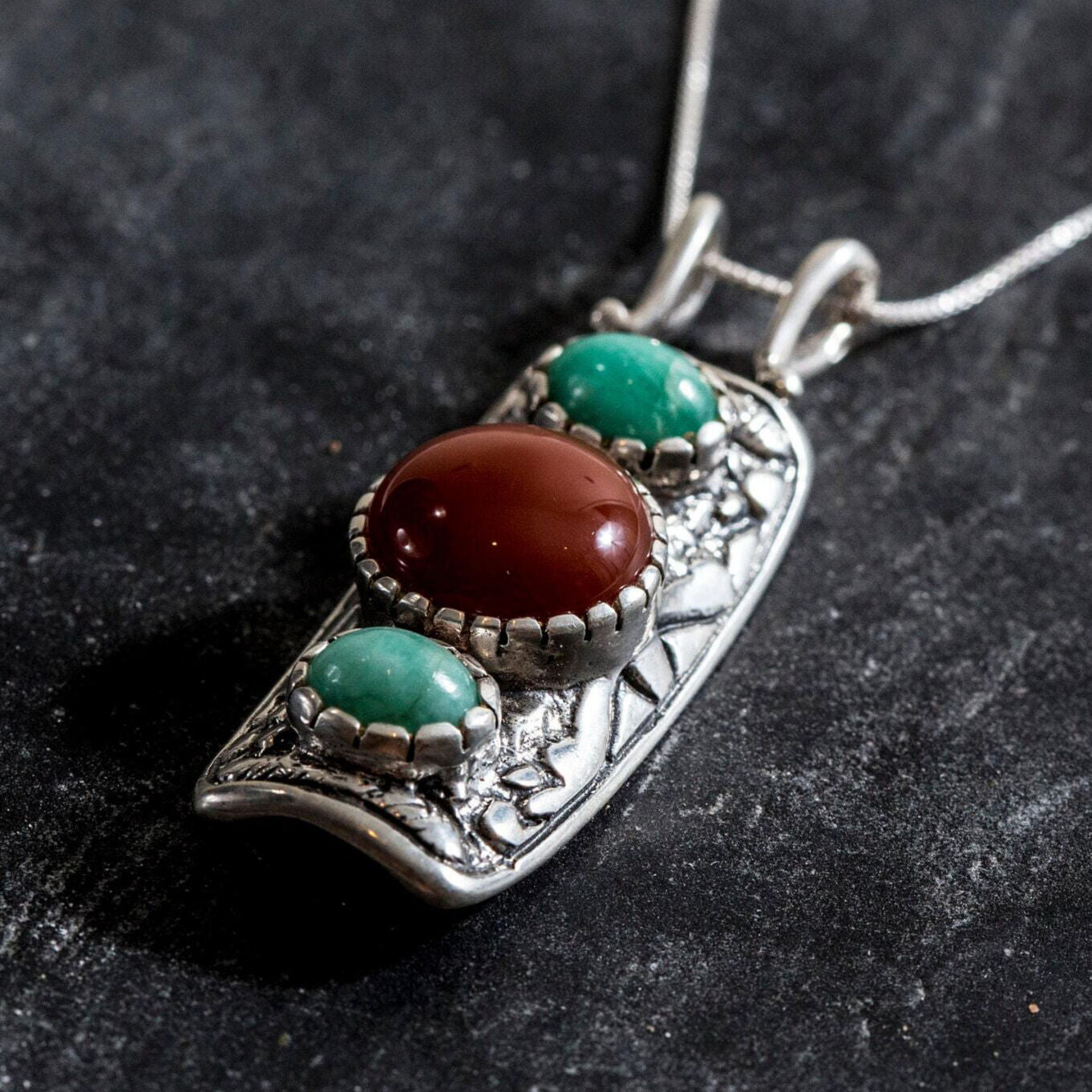 Red Agate Pendant, Natural Red Agate, Tribal Pendant, Natural Blue Topaz, Natural Amethyst, August Pendant, Solid Silver Pendant, Carnelian