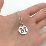 Letter M Silver Disc Pendant - Initial Necklace - Minimalist Letter Necklace