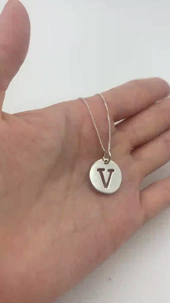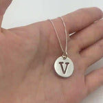 Letter V Pendant - Silver Disc Necklace, Alphabet Letter Pendant