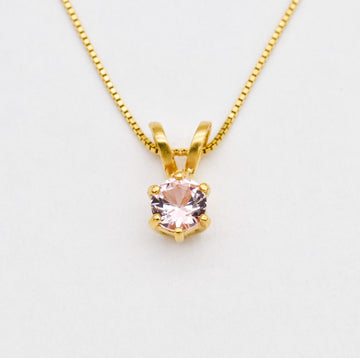 Gold Tourmaline Pendant - Pink Tourmaline Necklace - Round Pink Necklace made in 18k Gold Vermeil. Ideal for everyday wear and perfect for birthday gifting and special occasions.