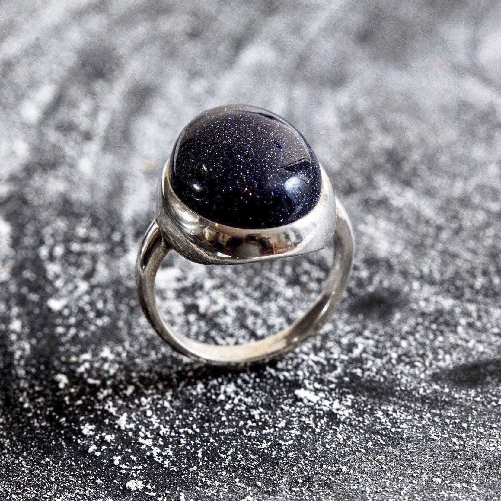 Large Sandstone Ring, Blue Sand Stone, Statement Ring,  Sagittarius Ring, Large Oval Ring, Vintage Ring, Solid Silver Ring, Blue Sandstone