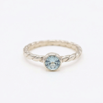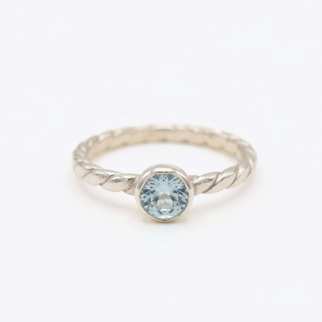 Aquamarine Ring - Dainty Blue Ring - Twisted Silver Band